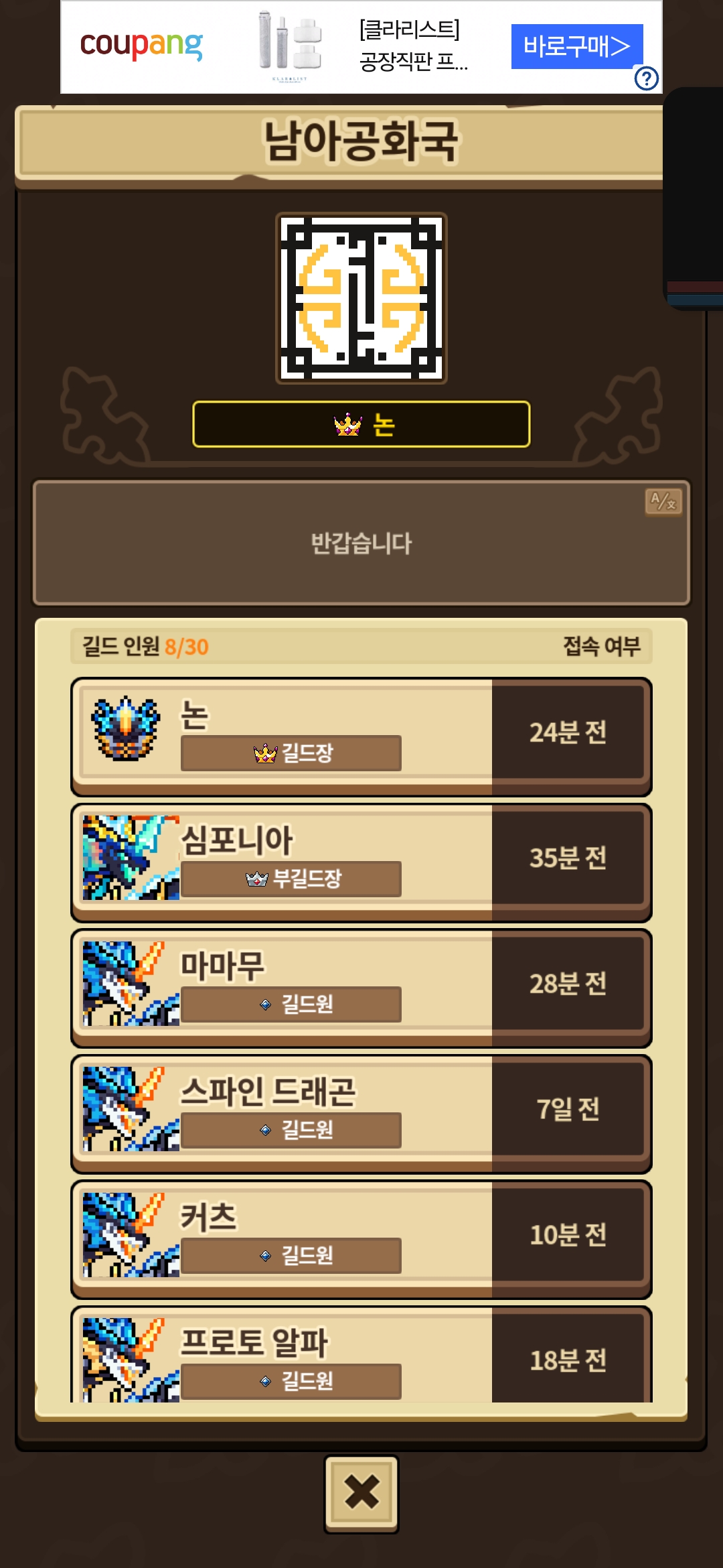 지금은 자유게시판에 길드 모집 알림 올리고,