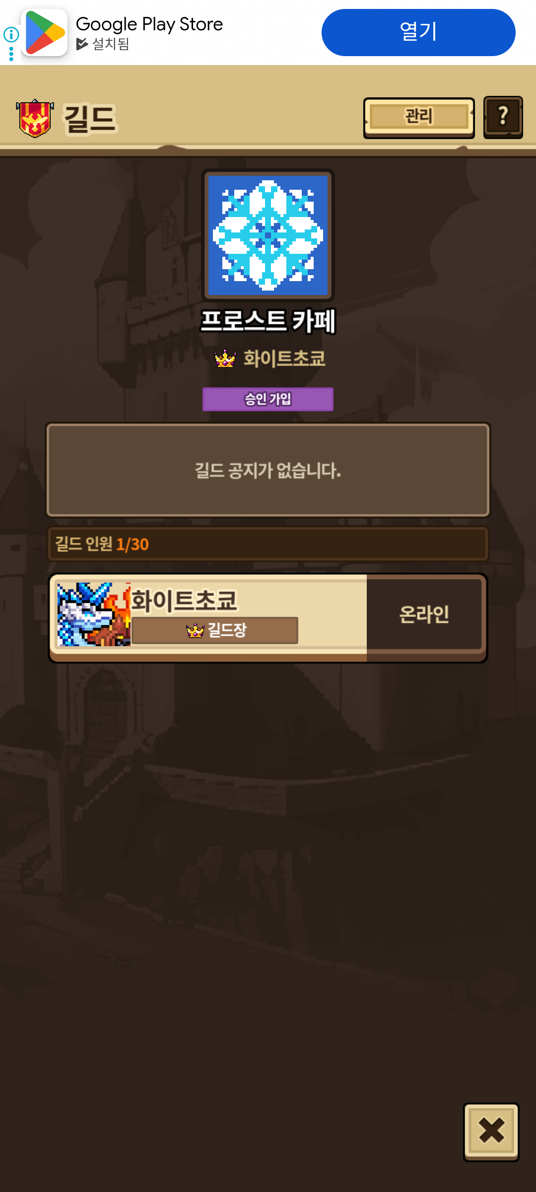 아까 사진을 봤다싶이 길드가 [승인가입]즉 제가 승인해야지 길드원이 되는 시스템입니다. 간단하게 길드가입을 누르고 제가 시간 되는데로 확인해 받겠습니다.