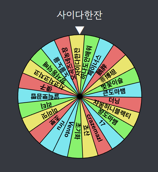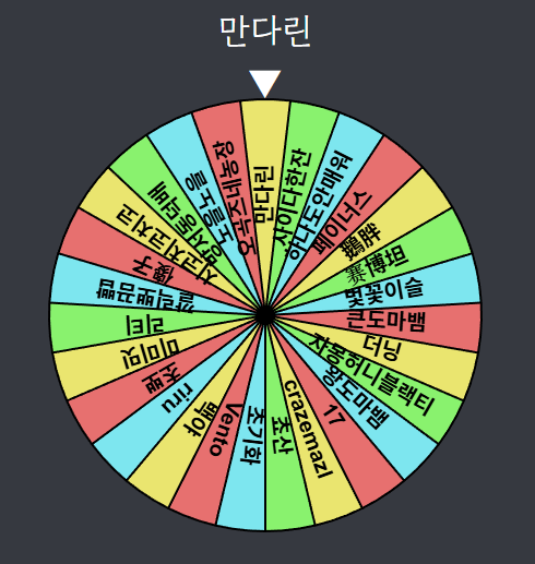 룰렛은 https://t.hi098123.com/roulette 사이트를 이용했습니다!