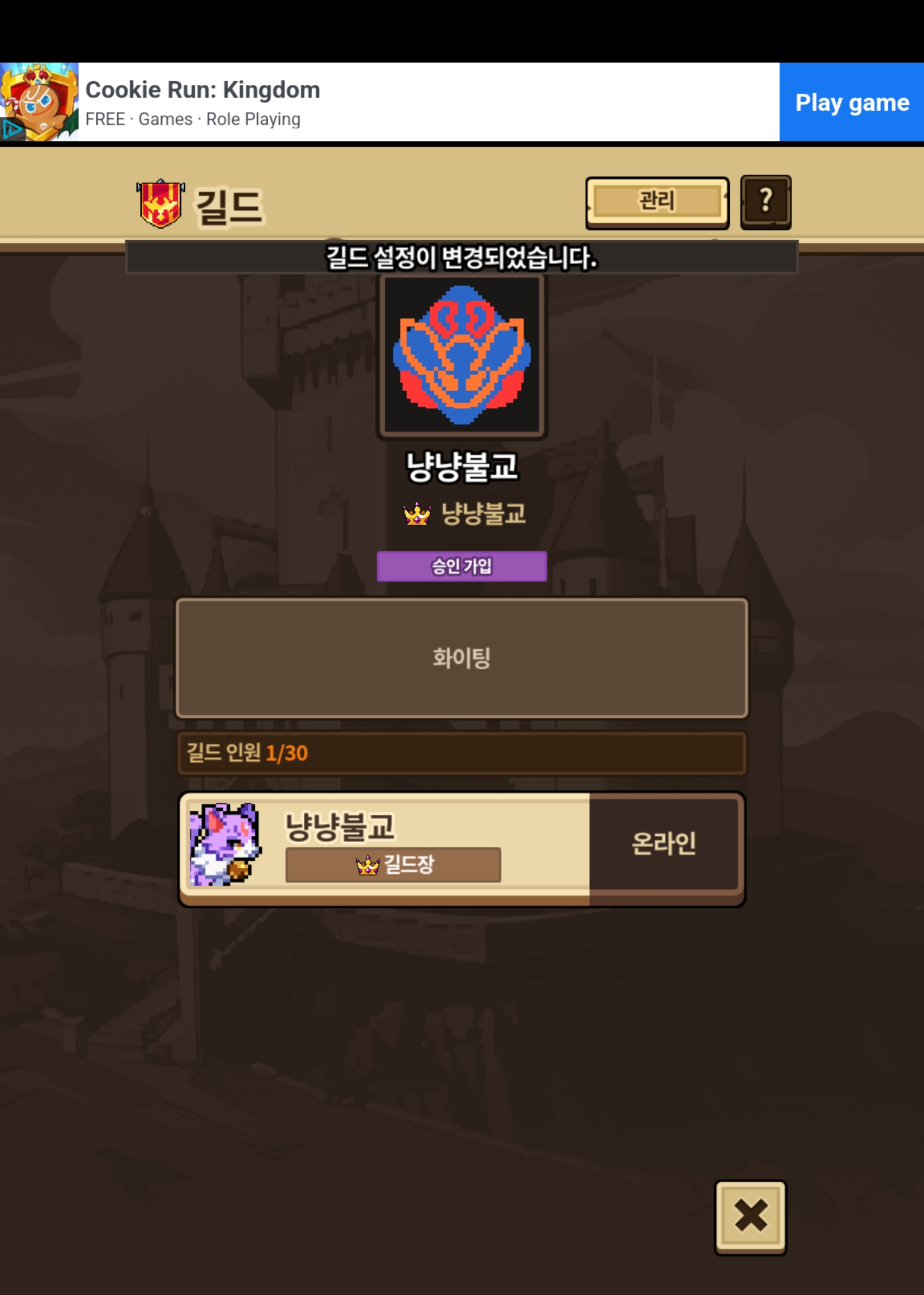 길드 들어가서 냥냥불교 치시면 나옵니다.