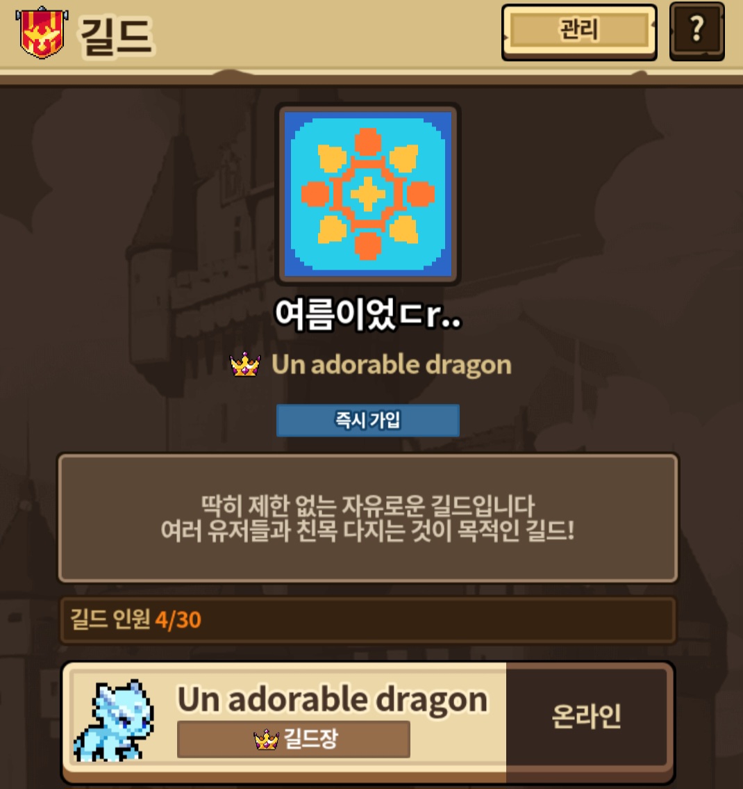 그래서 거의 길드원 모집 안 한 길드라 봐도..ㅋㅋ