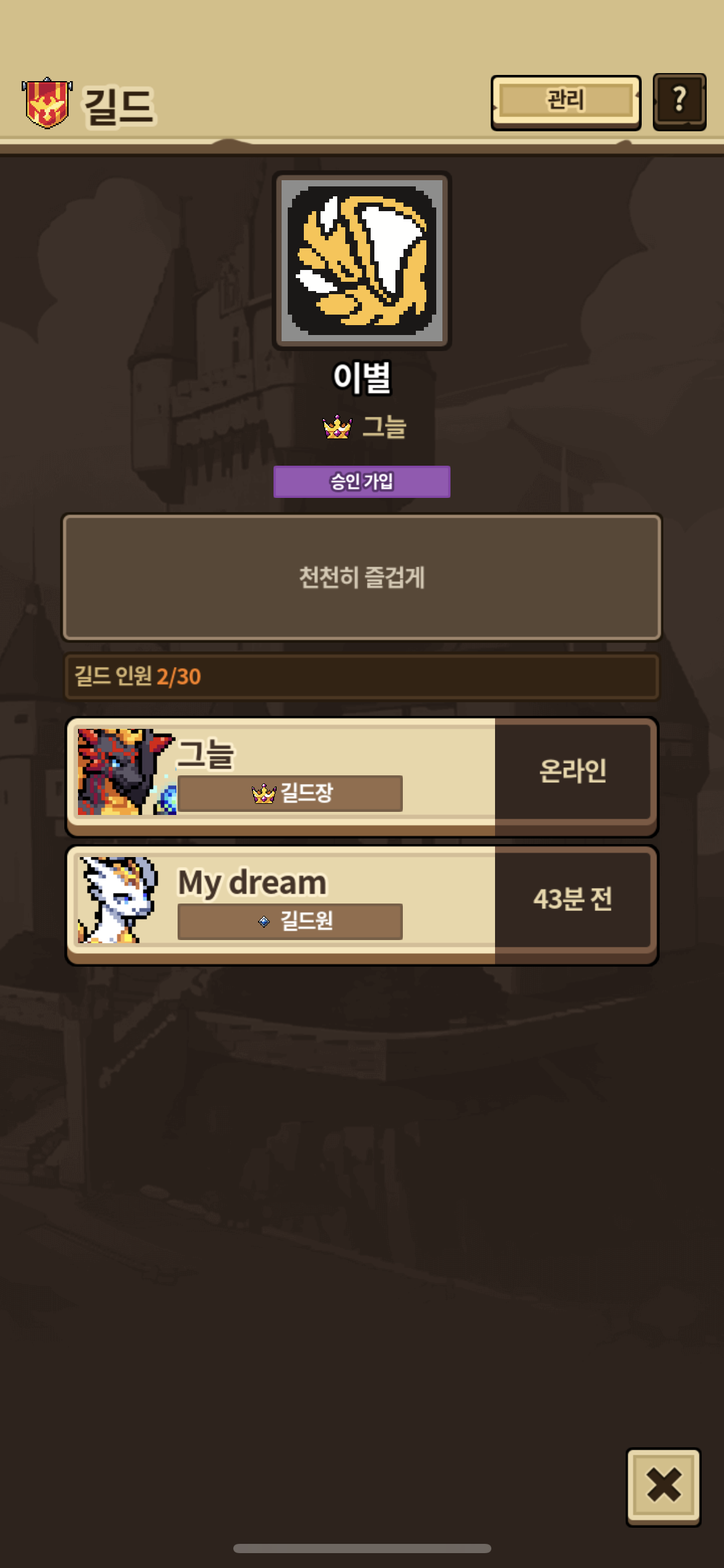 [길드모집] ‘이별’ 길드에서 함께 오래 즐겁게 게임할 분들을 모집합니다 :)