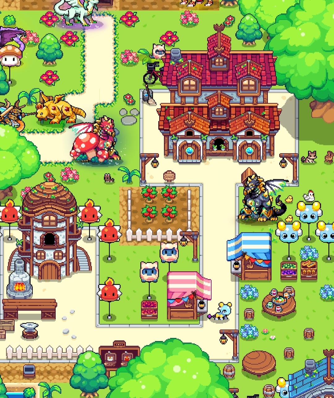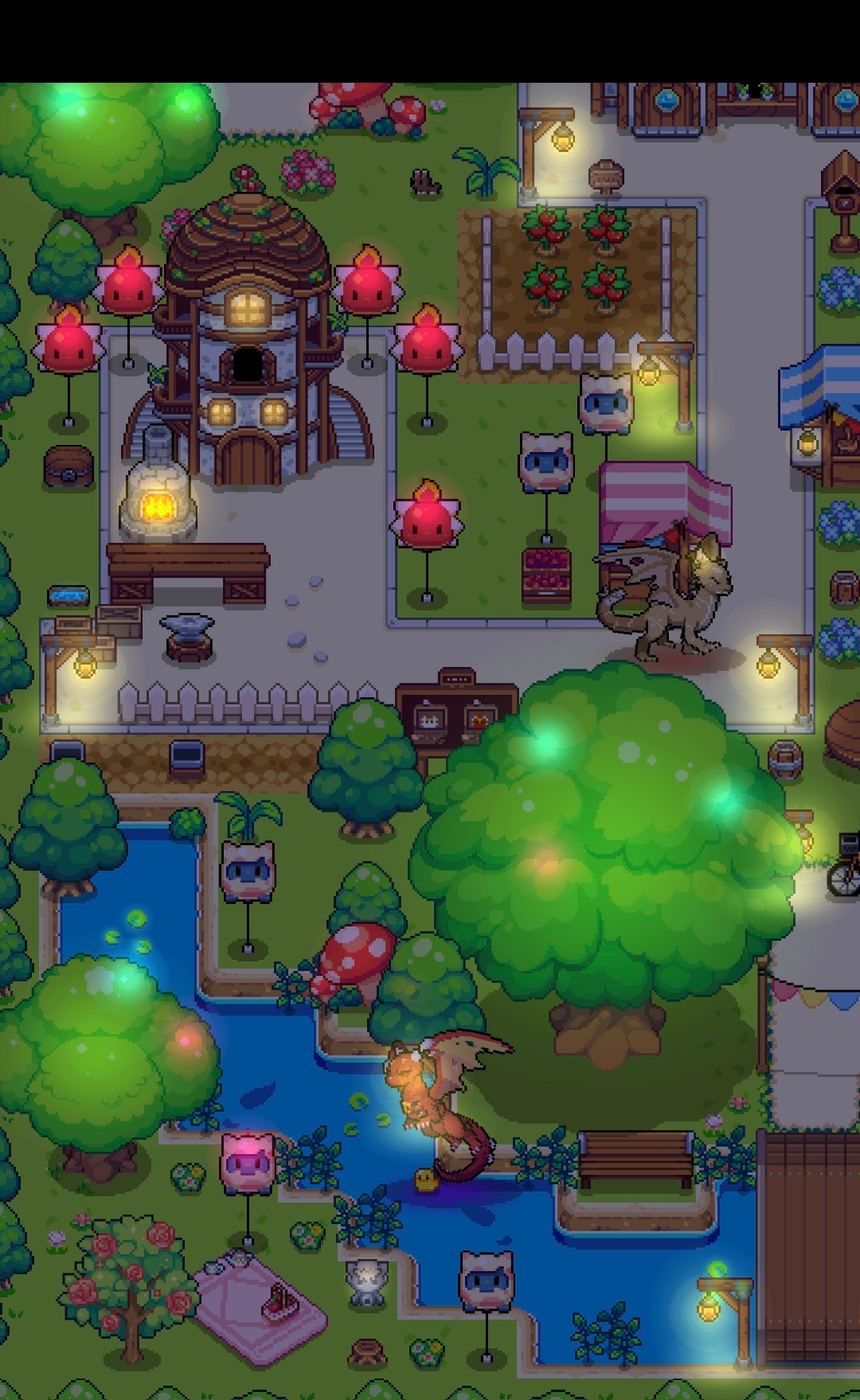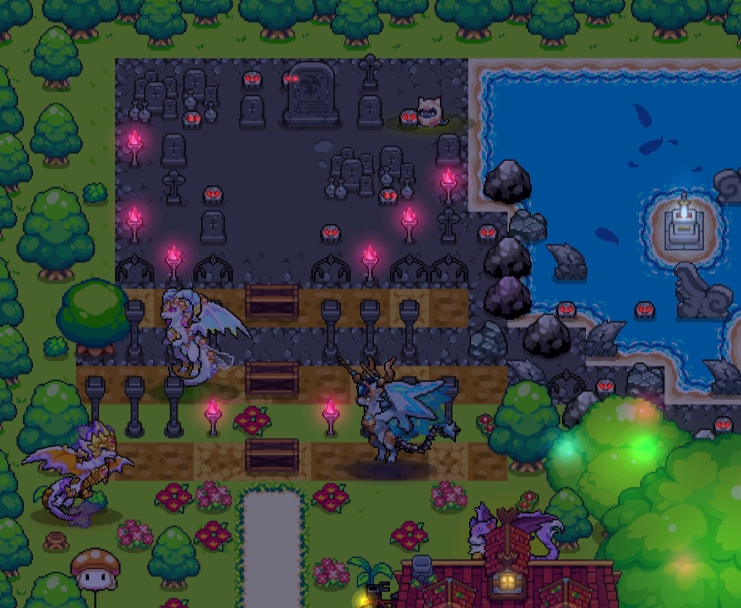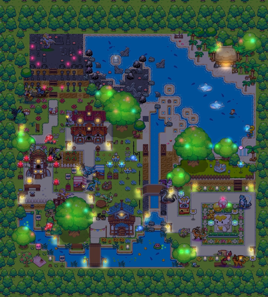 밤배경이 어울리는 빌리지입니다. 40x40으로 작업했습니다. 언덕과 절벽으로 이루어진 전경과, 작은 폭포를 따라 바다로 흘러내려가는 강물로 이어진 바닷가의 원경을 의도했는데 잘 드러났을지 모르겠네요.