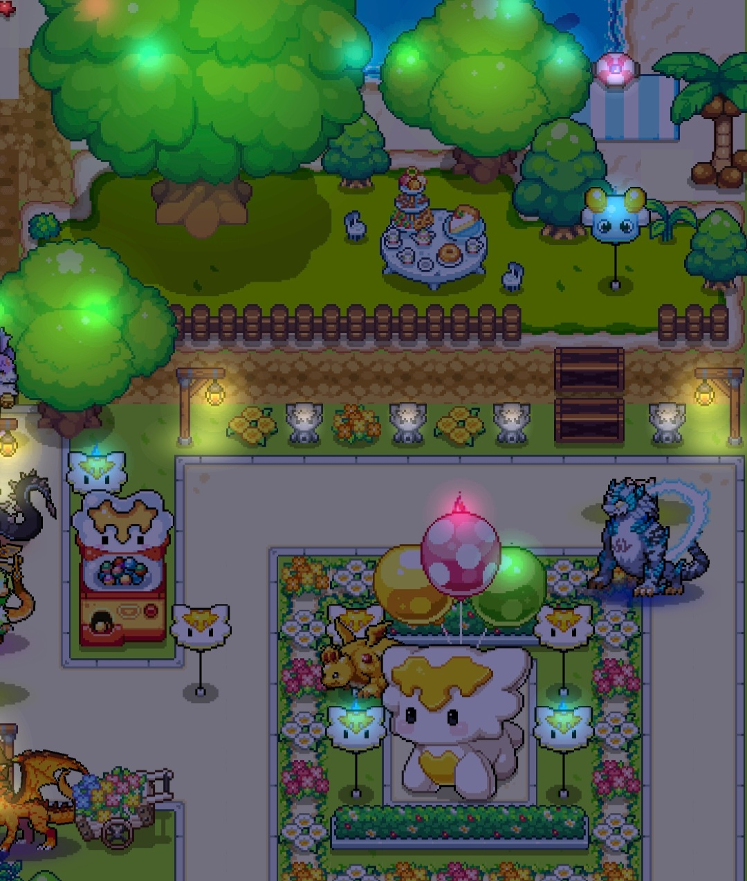 낮도 귀엽습니다. 피크닉 식사 탁자와 꽃수레를 정말 좋아해요.