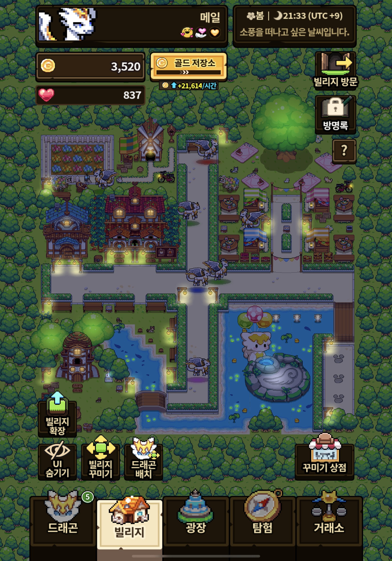 꾸미기 아이템에 사람이 생긴다면 더욱 드래곤과 함께하는 빌리지를 탄생시킬 것 같아요.