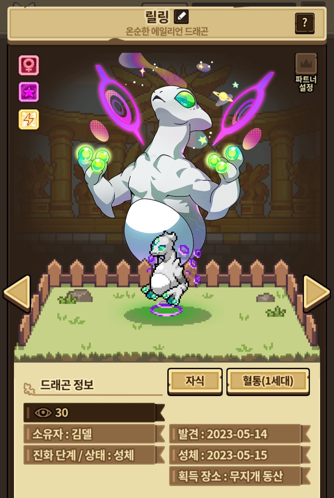 다들 멋진 성격을 갖고 있거나 희귀한 드래곤을 보여주셔서 우리 아이로 참여할까 말까 고민했는데, 그래도 역시 테이머 눈에 제일 예쁜 용이 제일 귀한 용 아니겠어요 ㅎㅎ
