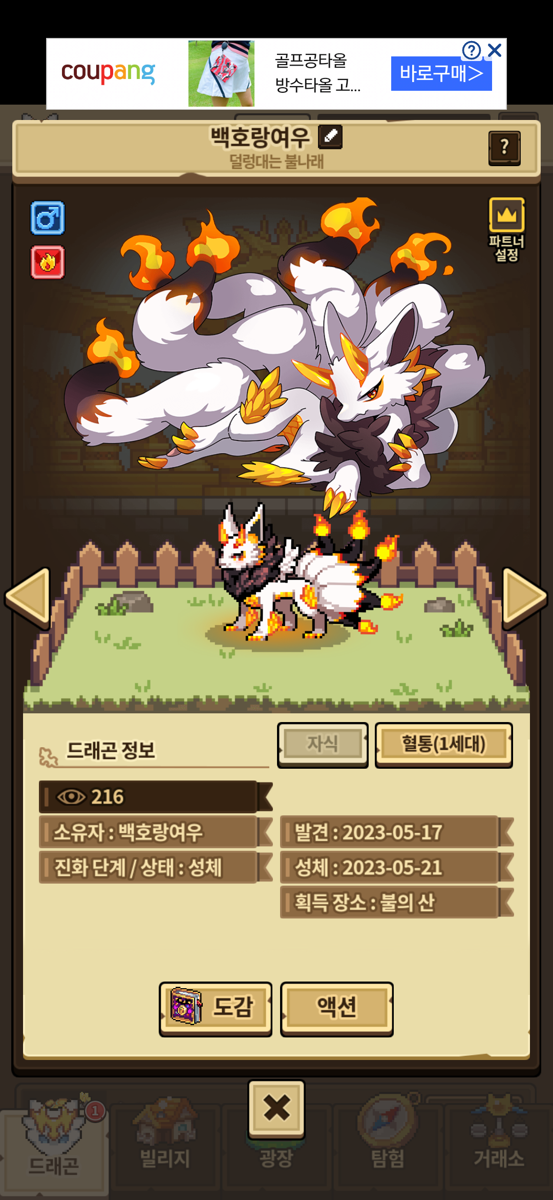 여우나 구미호를 좋아해서 불나래 얻는 방법이 나오기 전부터 바람 신전파견에 구미호가 있는걸 발견하고 어디에 쓰는지는 몰라도 계속 모았더니 업데이트 되자마자 불의산에서 불나래가 나오는걸 보고 바로 데려올 수 있었답니다