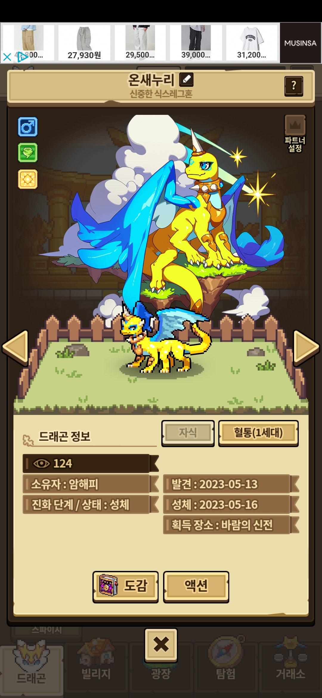 다리가 6개이며 밝은 노란색을 하고있던 이 드래곤에 빠지게 되어 저또한 이 드래곤을 데려와 게임 초반에 정성스레 길렀던 드래곤입니다.