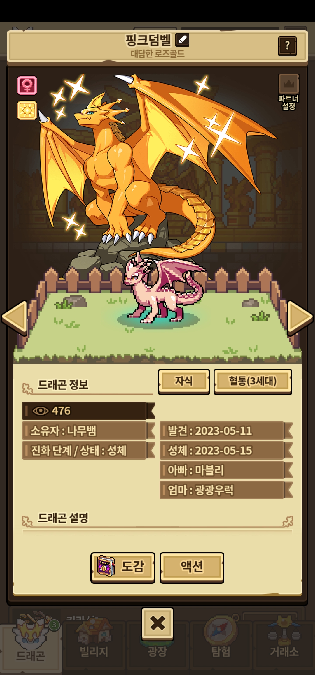 제일 먼저 얻은 희귀용이 지땅이었고 땅파기 1트 교배 1트라는 우연이 만들어낸 제 자랑거리입니다ㅎㅎ