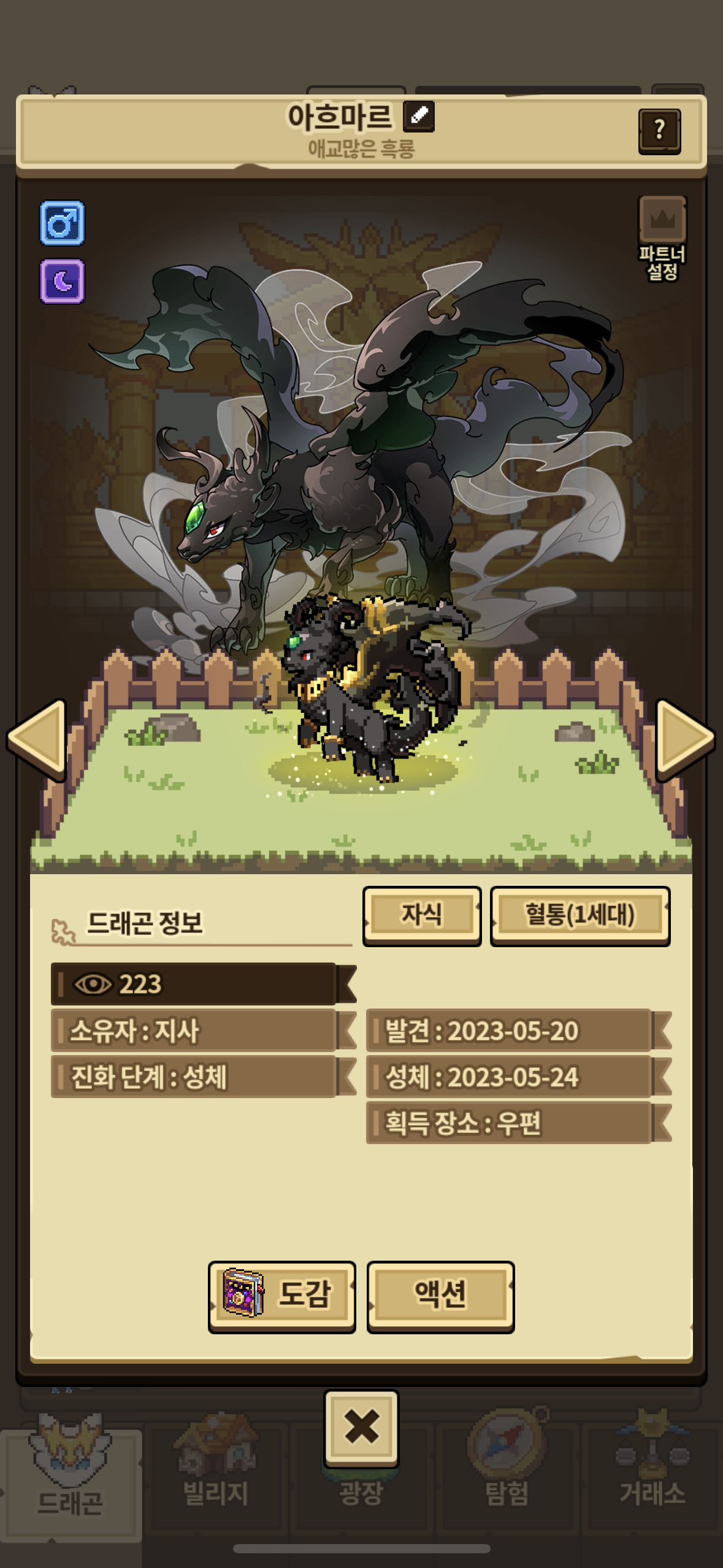도감작 이틀간 열심히 해서 겨우 얻고 애교많은으로 예쁘게 만들어준 흑룡입니다! 얘 하나 얻으려고계속 노가다만 했어서..굉장히 의미있는 친구예요