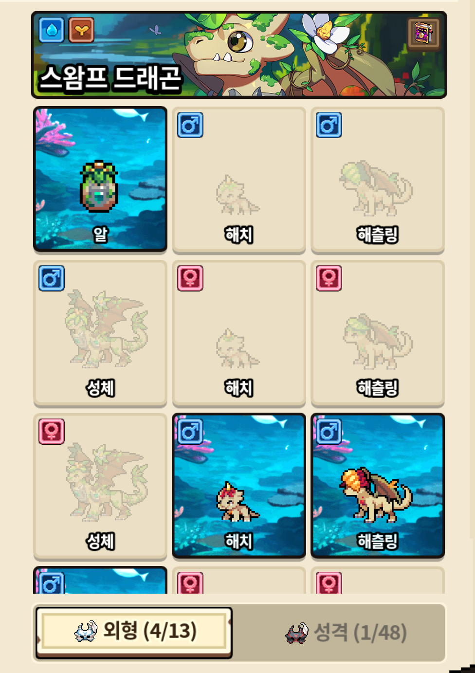 크레스티드 드래곤이나 스왐프 드래곤 등등 여러 드래곤들이 암수 기본 외형 외에도 더 많은 외형을 가진 드래곤들이 있던데 알 모양은 하나인거 보면 알 하나에서 어떤 외형이 나올지 완전 랜덤인건지.. 아니면 특정 외형으로 진화 시키는 조건이 있는건지 궁금해요