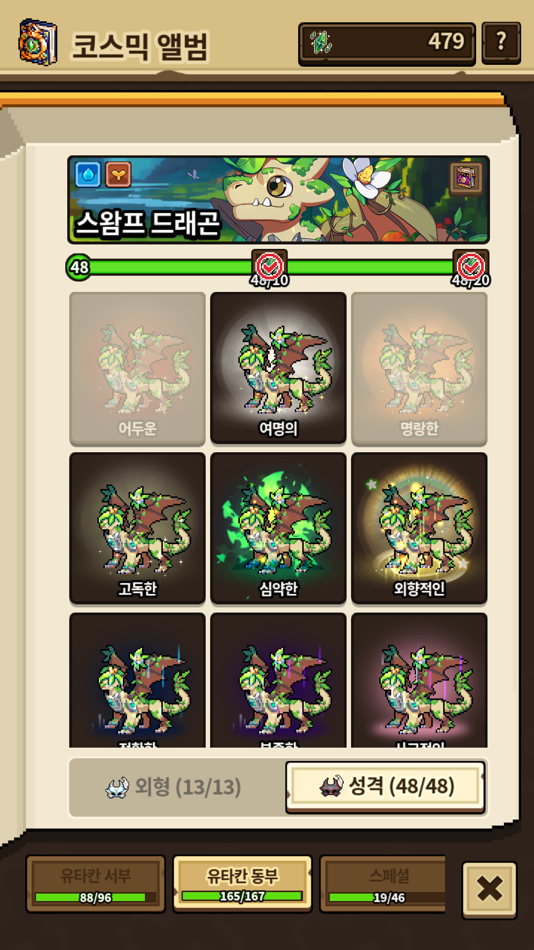 성격이 44종일 때 완성했으나, 신규 성격 업데이트 이후로 모두 채우지 않았음에도 “48종” 모두 채웠다고 표기됨.