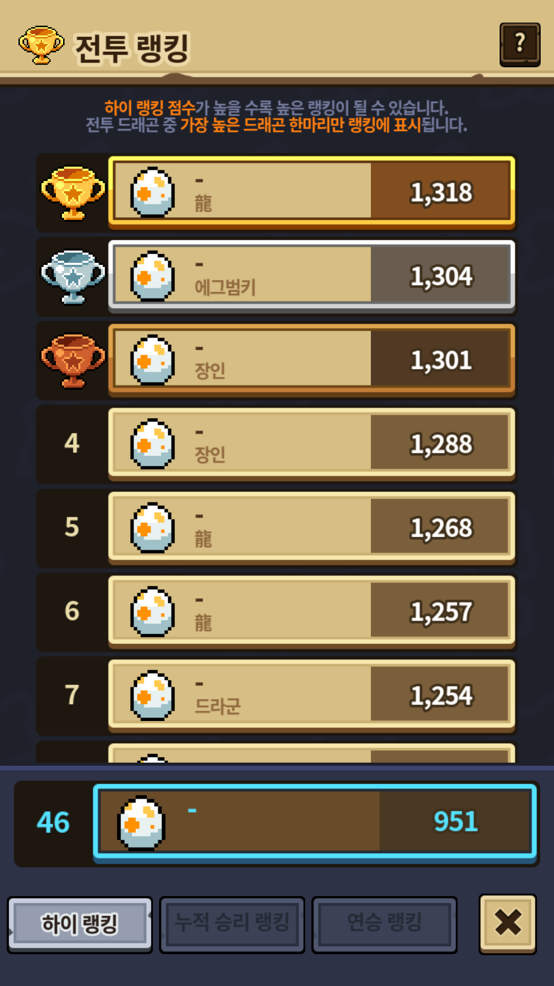 특수 액션 전투 랭킹 ( 특수 액션을 가진 드래곤 → 전투 능력치 → 랭킹 아이콘 터치) 에서 프로필과 드래곤이 제대로 표기되지 않음.