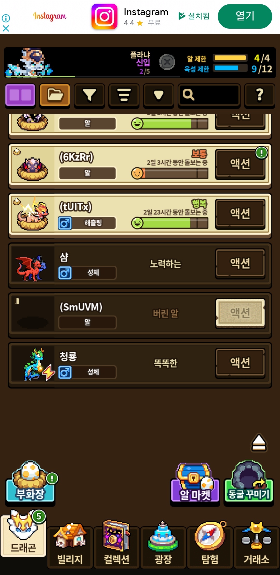 4. 드래곤 다 키우고 나면 승천 하기가 있는데 클릭하면 어떻게 되나요?