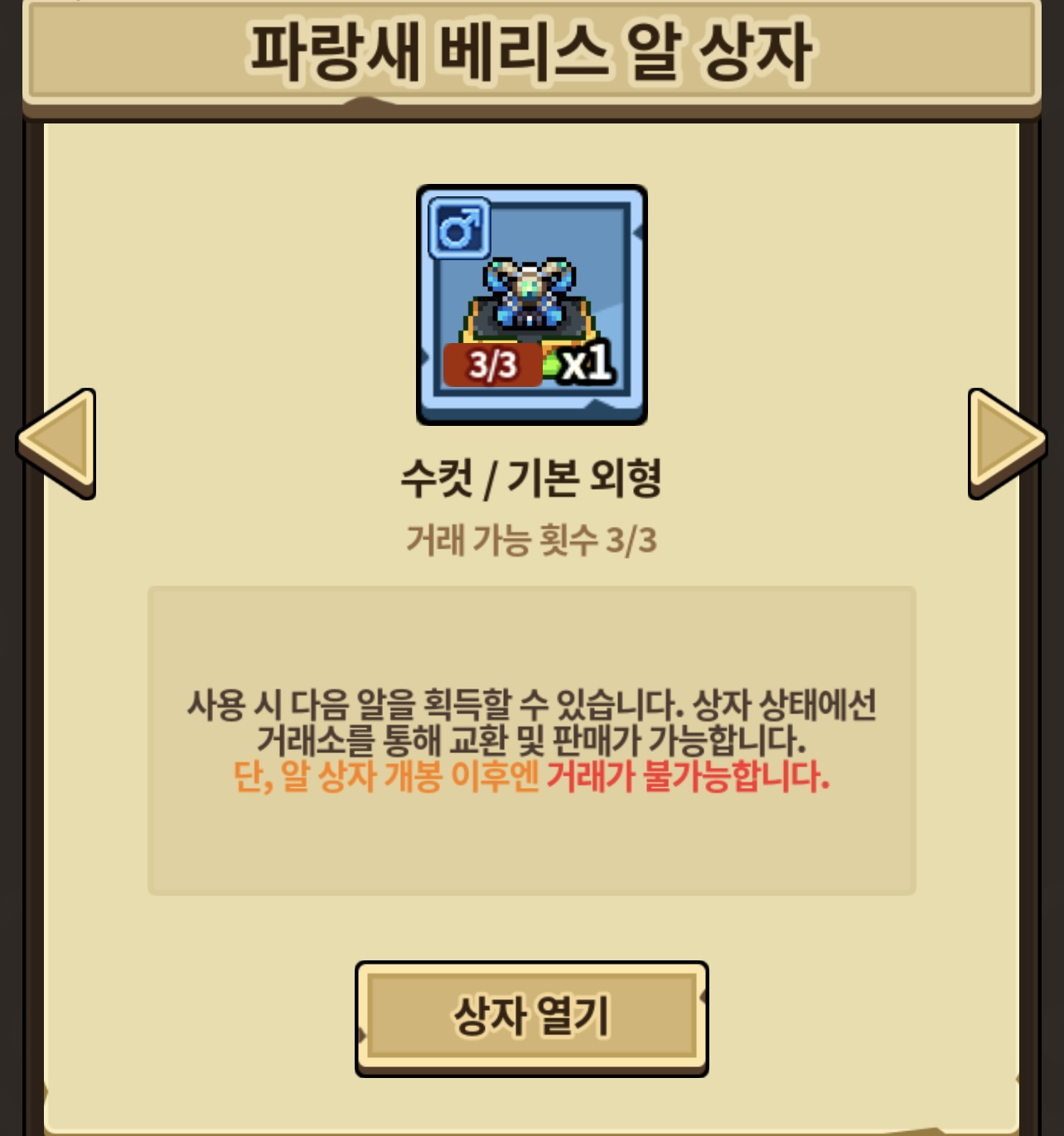 처음 상자 얻었는데 열면 3 / 3에서 2 / 3가되는건가요 아니면 아예없어지는건가요..ㅠㅠ