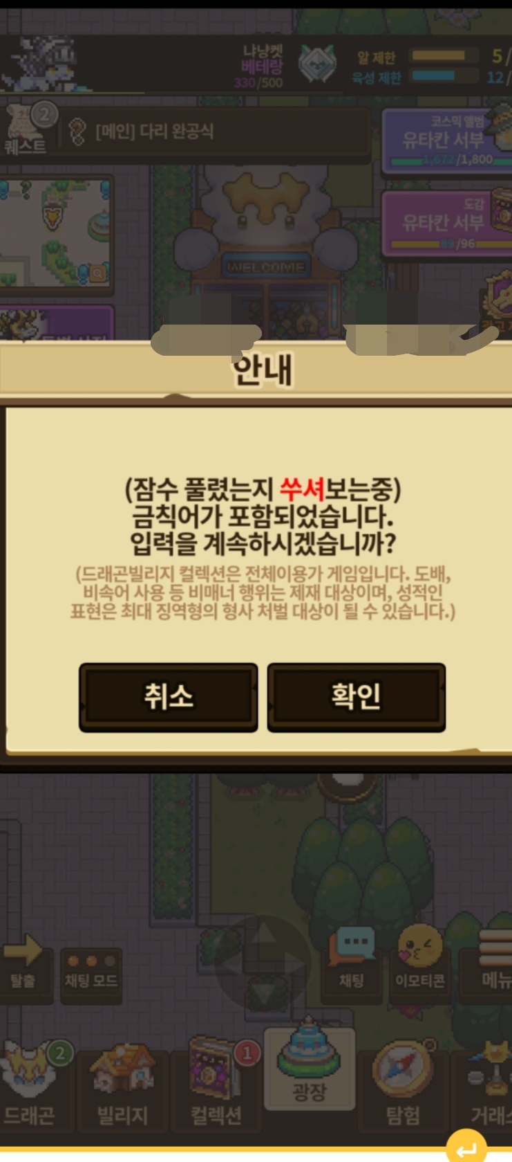 이러길레 쑤옆에 특수문자 한개 붙이고 채팅쳤습니다. 파트너가 스렌이라 스렌 창으로 잠수이신 분들 잠수 끝났는지 확인하는건데 떠가지고..