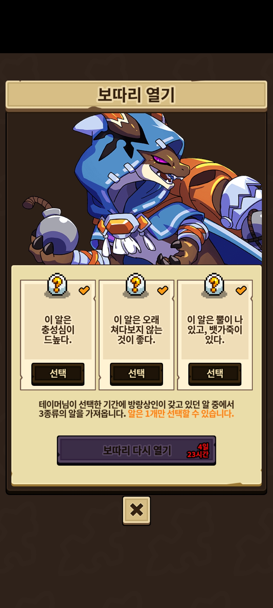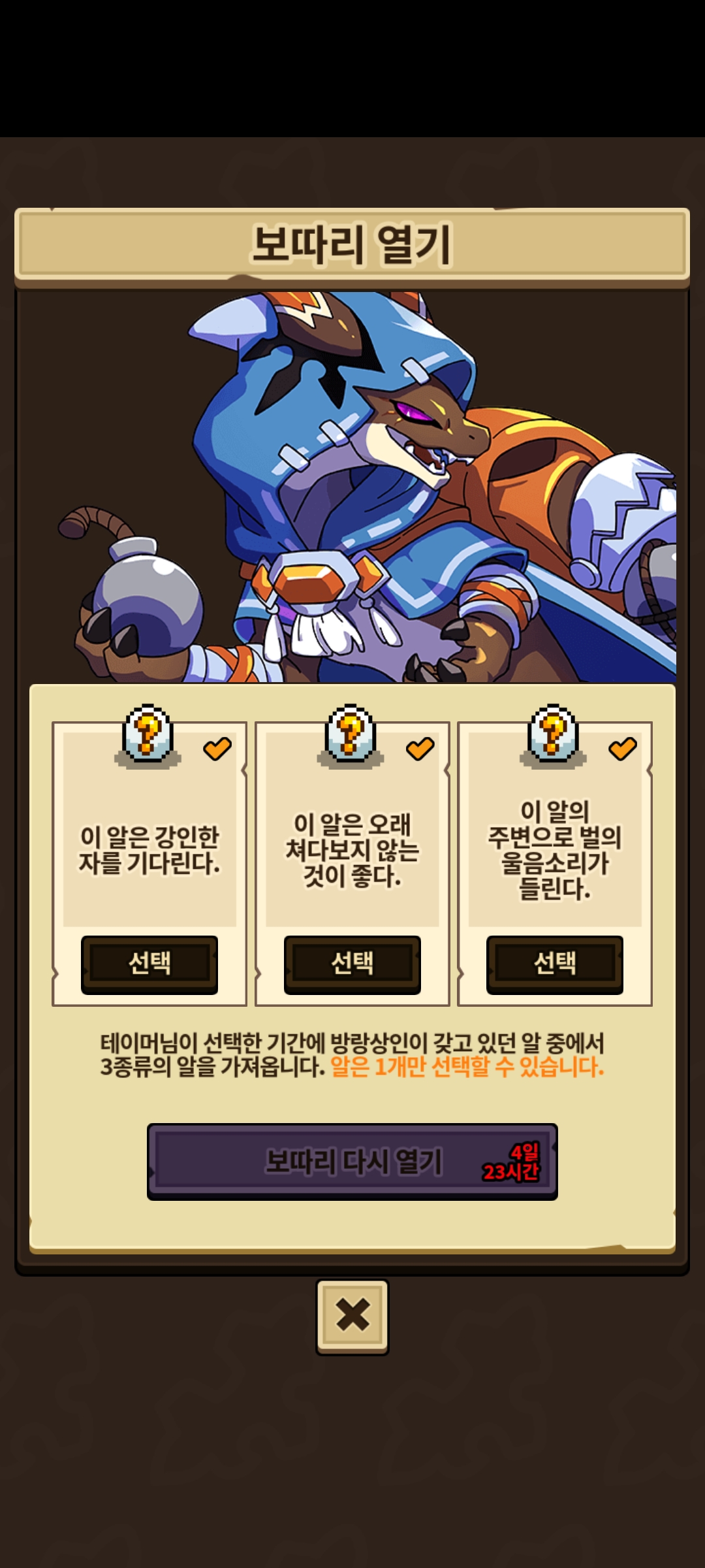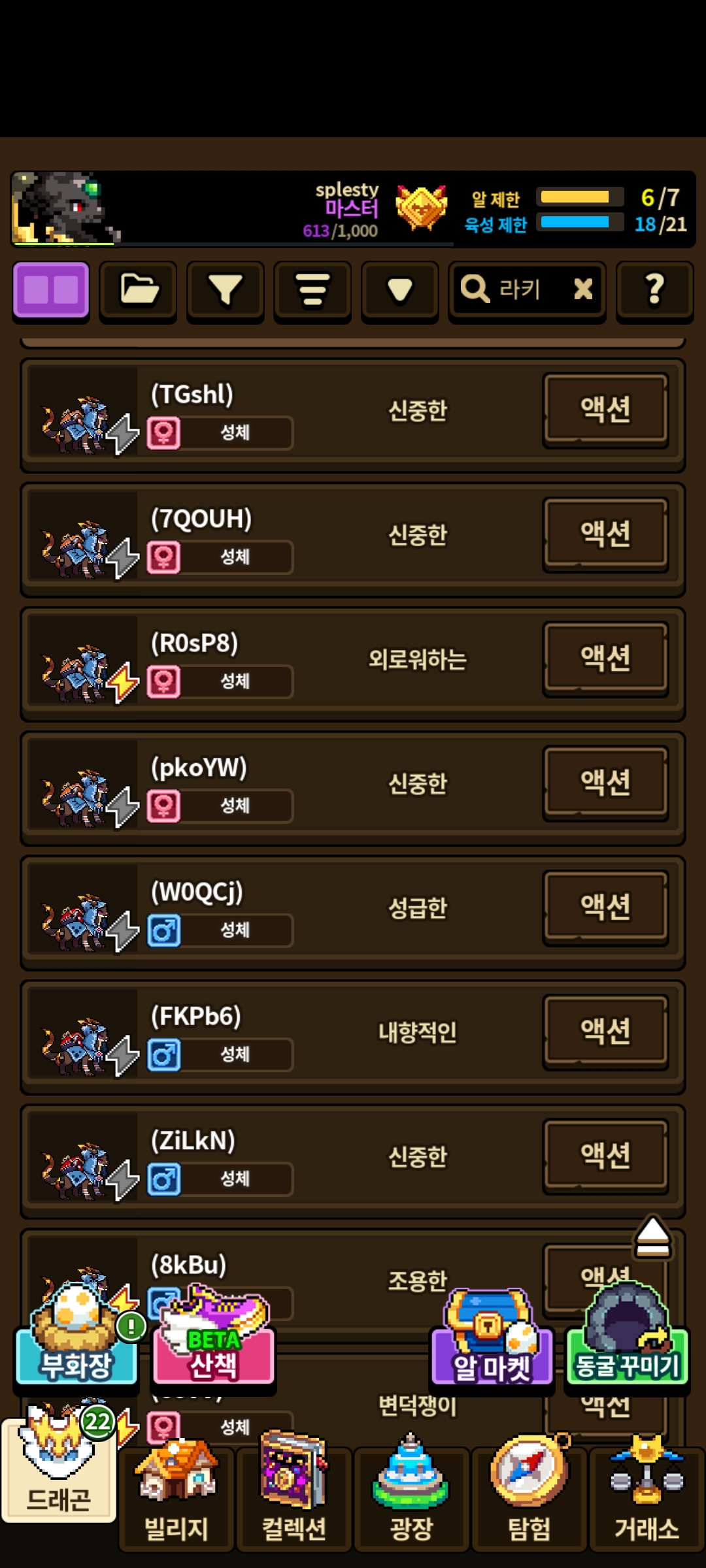 얻은 알은 거래 불가로 못 팔지만 대신 교배로 생긴 2세들은 거래가 가능합니다.