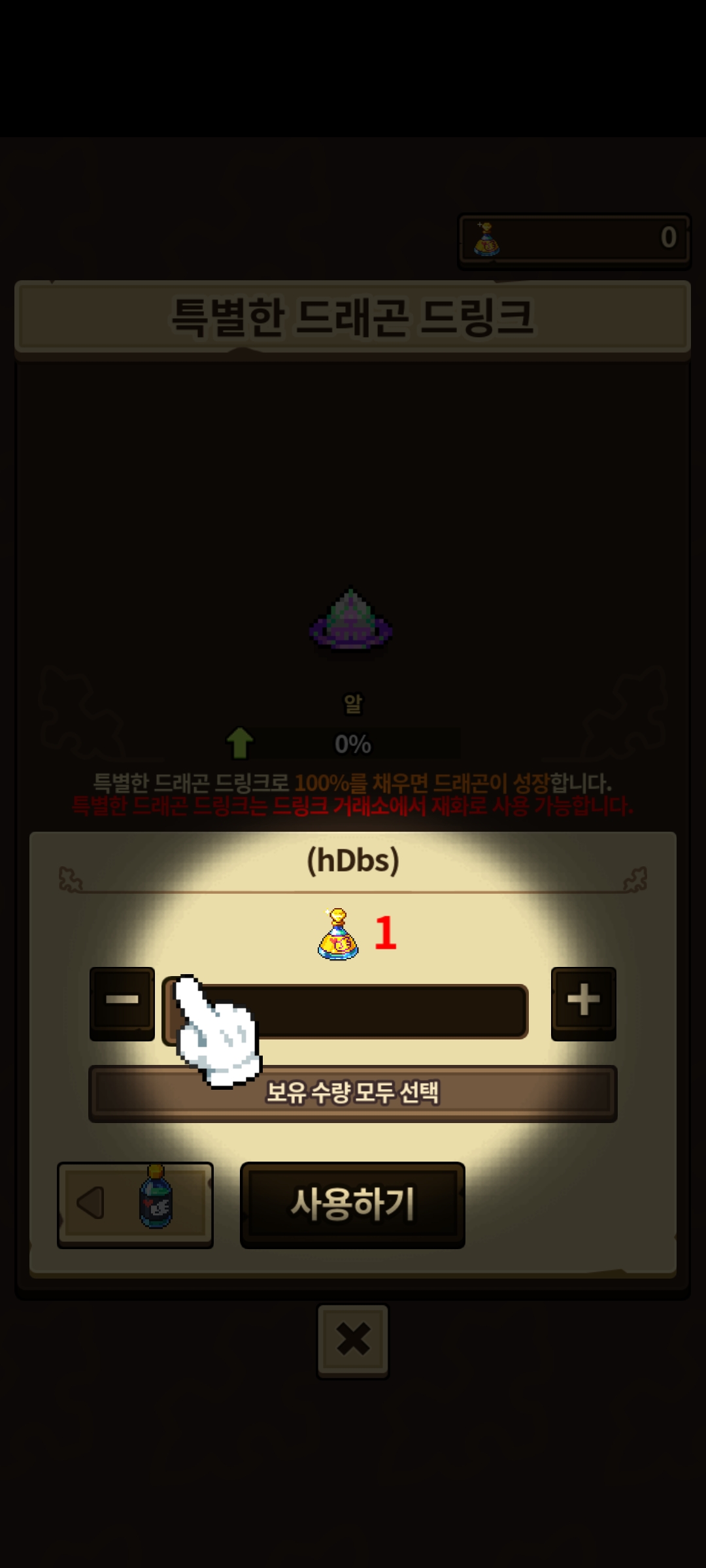 이 계정은 드링크가 하나도 없어서 튜토리얼에서 막히고 있네요