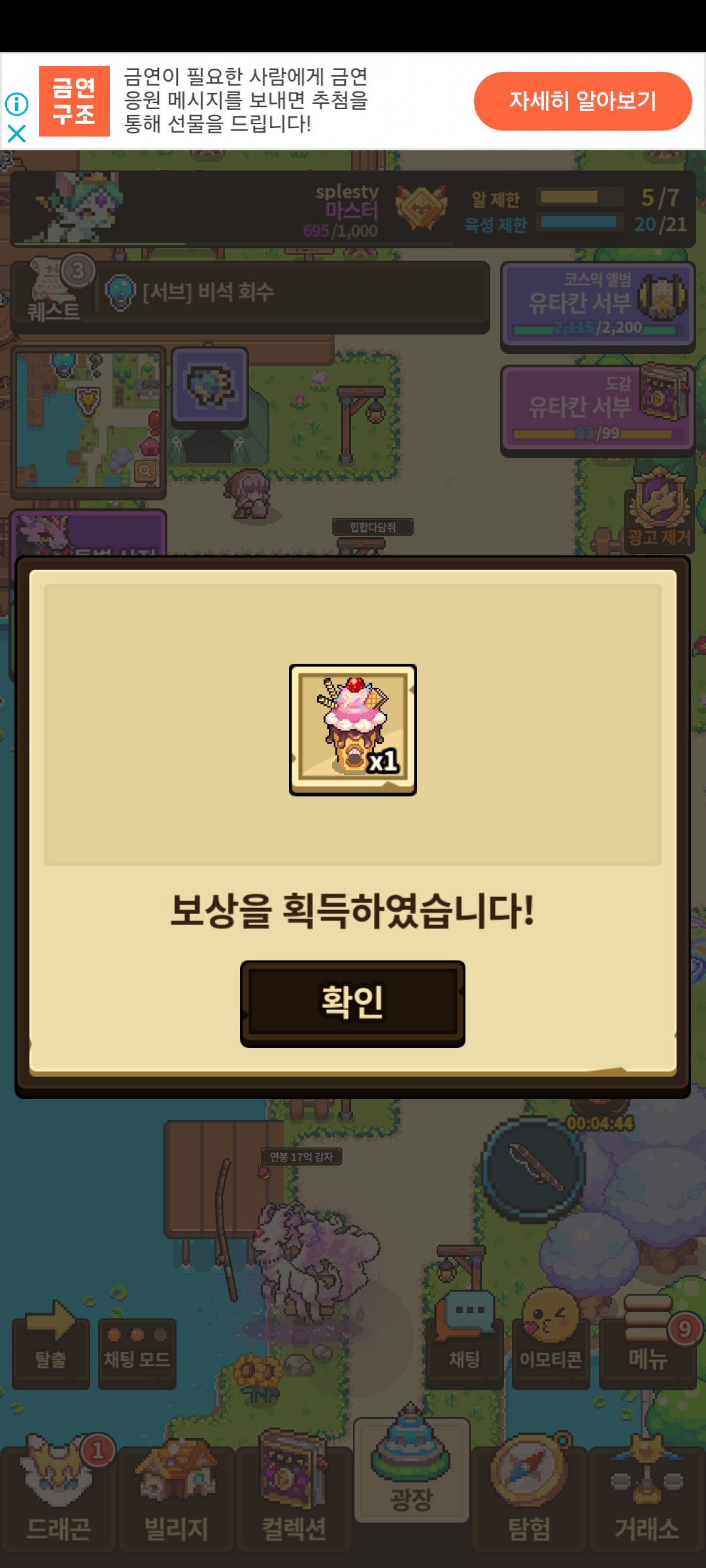 오늘 강에서 미끼를 물고 도망가는 초콜릿과 아이스크림 괴생명체를 발견했습니다.