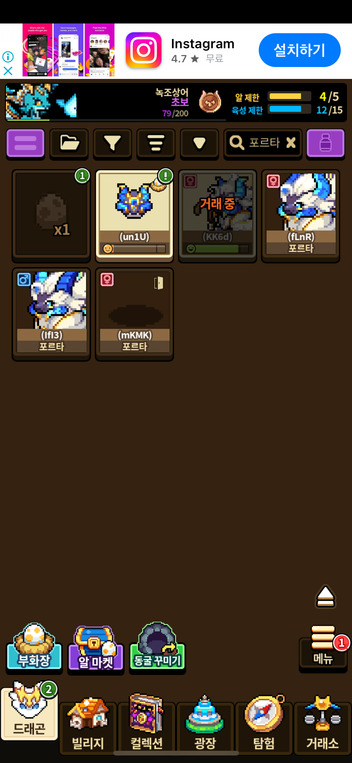 진짜 왠만하면 중복인 드래곤 3마리 이상 가져본적이 없는데 포르타가 이번이 처음이네요