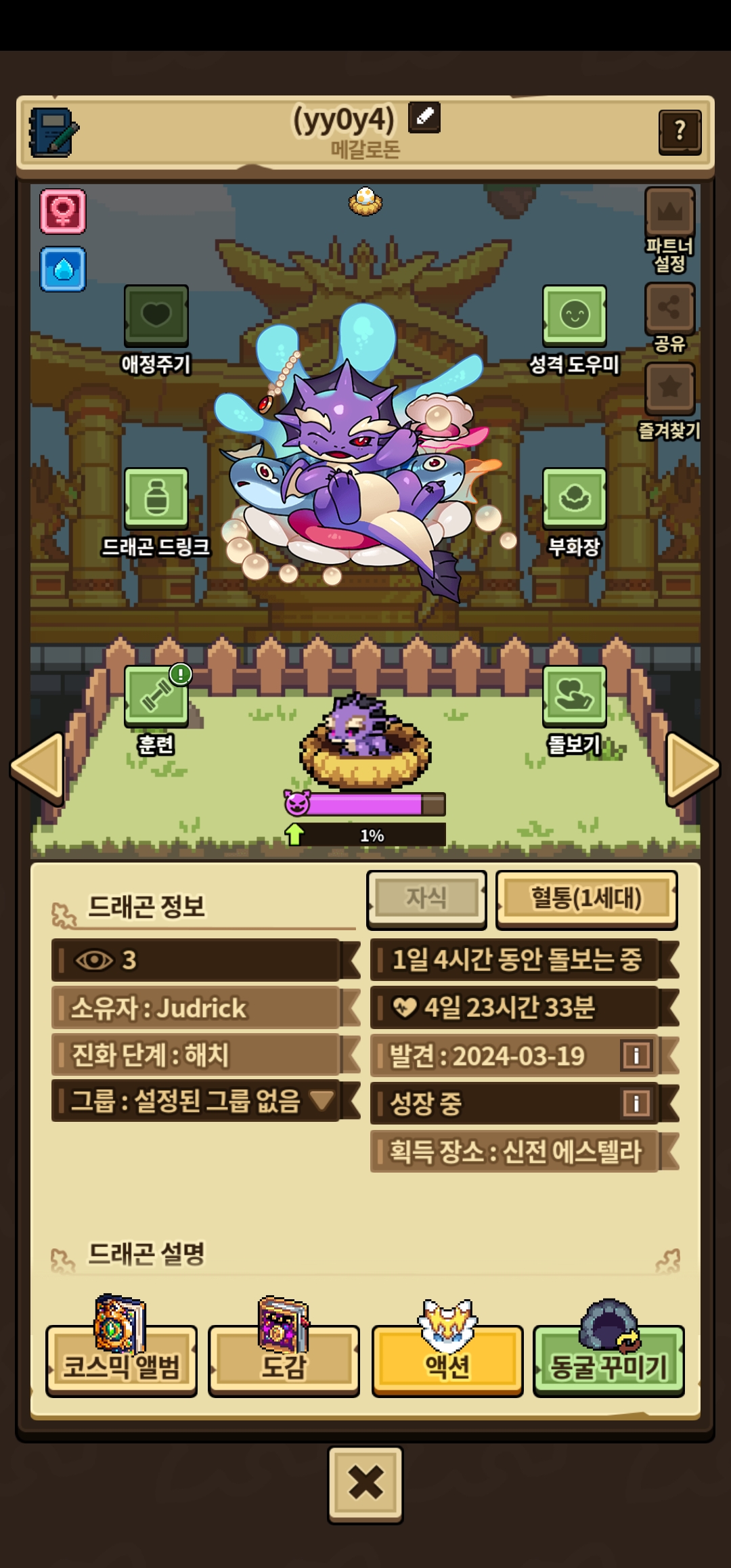 저 용 말고도 에스텔라 등장용들중 부화장+아주훌륭해! 면 바로 질병선 넘어보이는 용도 있습니다. 물론 눈에보이기만 그렇기때문에 실제로 돌보면 예상치보다 낮게 채워지지만요