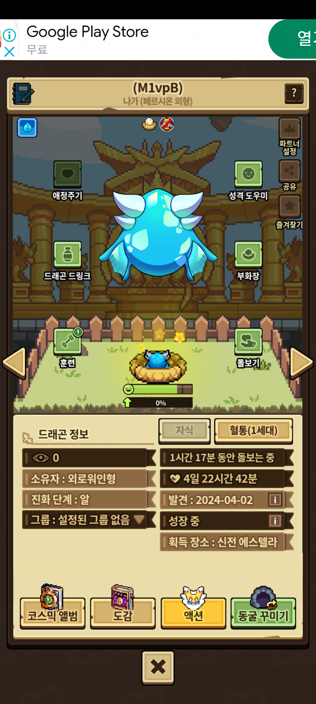 신전에스텔라에서 나가 1마리가 페르시온 얻음