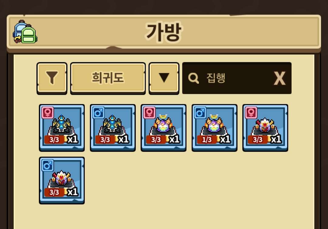 두 번째 알조각 50개는 집행 암컷 테미즈 중복이 떴는데요