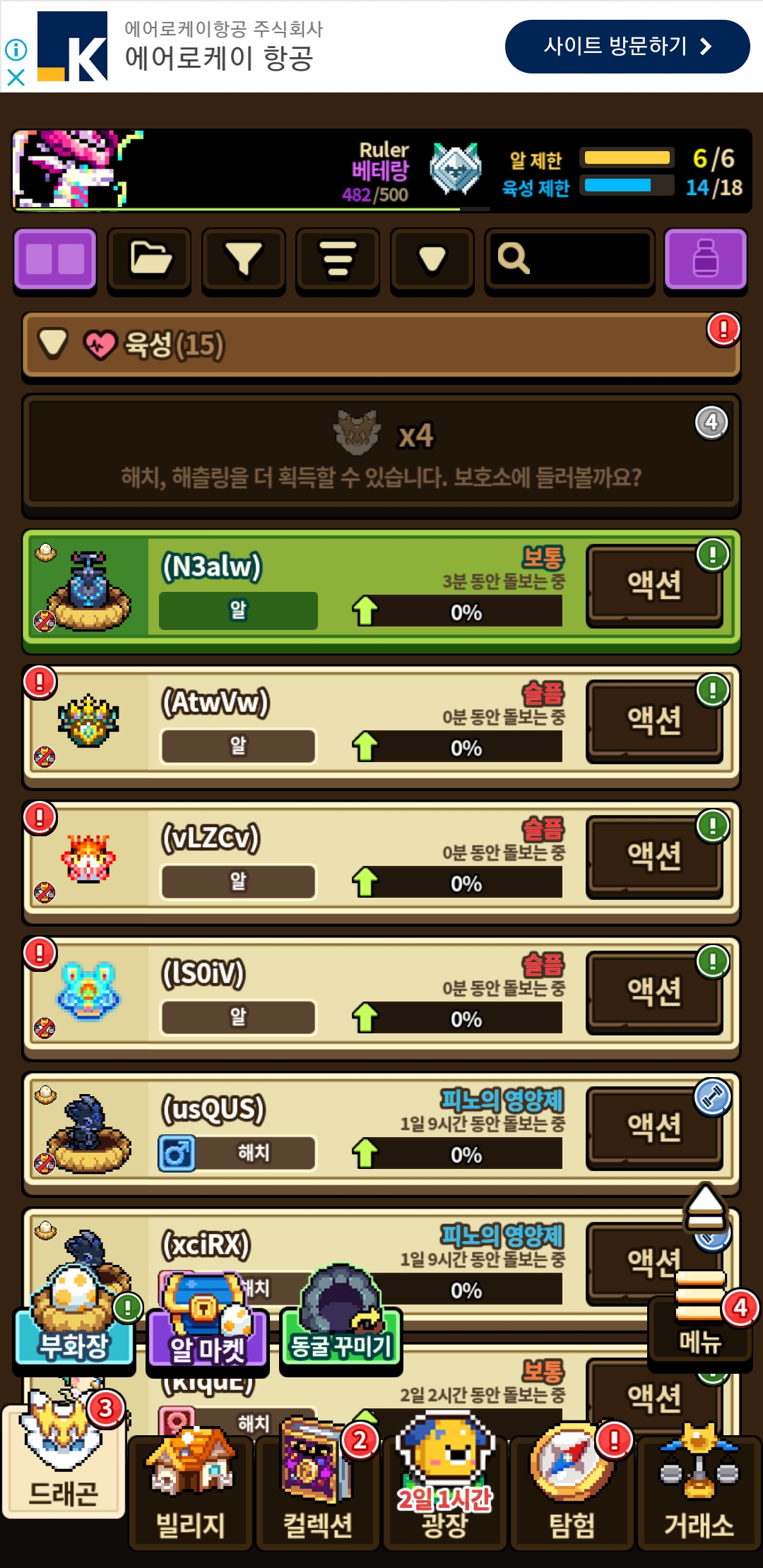 시작한지는 오래 되었지만 본좌보다 많은 드래곤을 가지고 계시는 분들이 많으시다.
