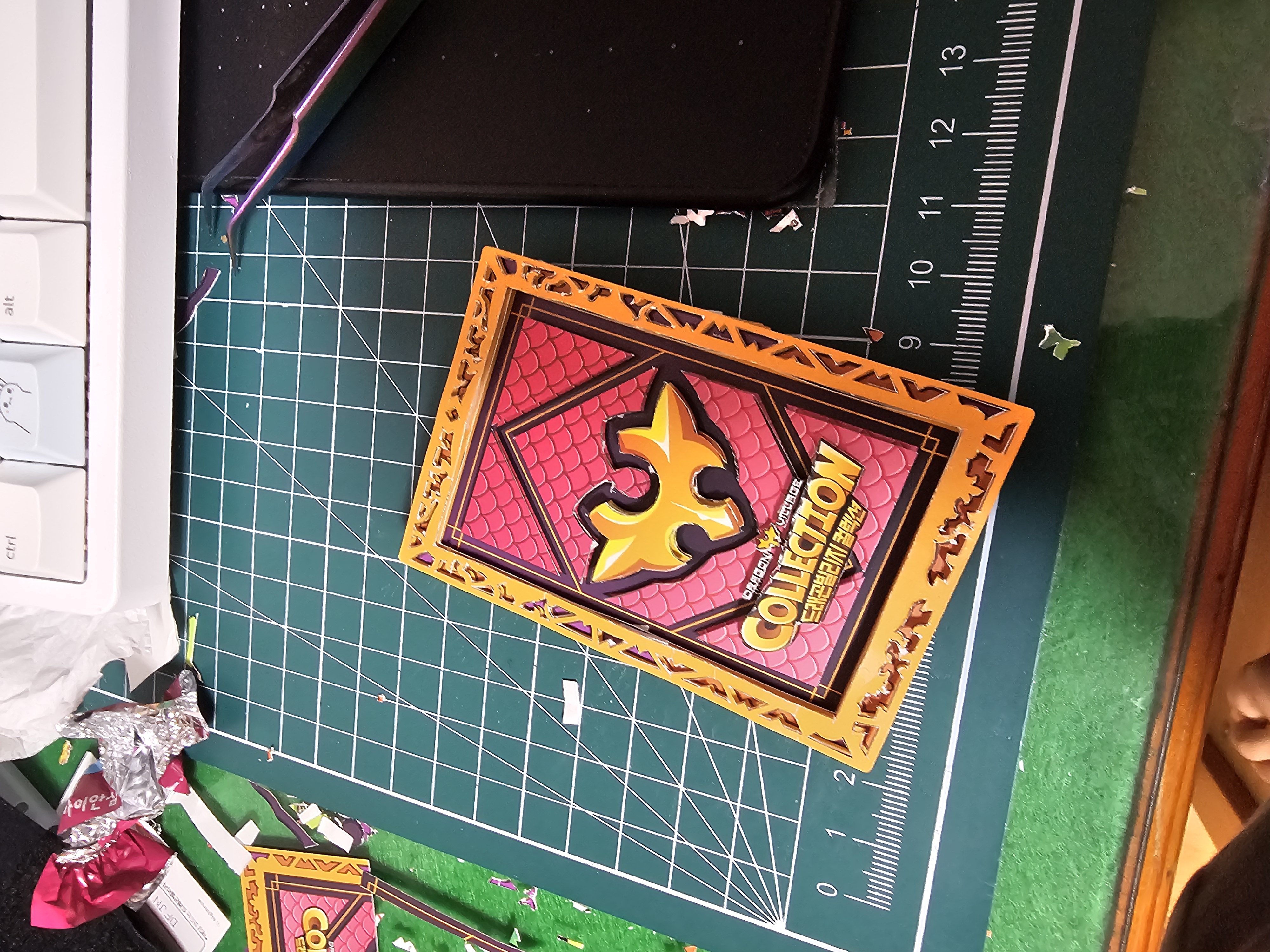 주위가 조금 더럽긴합니다..!! 이번엔 전체적으로 카드 만들어봤습니다! 뒷면도 한번 만들어 보았습니다! ㄴㅏ름 괜찮게 만들어진것 같네요ㅎㅎ 다른 카드로도 만들어보고 싶지만.. 다른 카드는 적기 때문에… 보물 상자로도 만족 합니다 근데 이건 그게에 올려야 하나여( 보물상자 카드는 사용한 걸로만 만들었으니 굳이 치는 수고는 안해도 됩니다!)