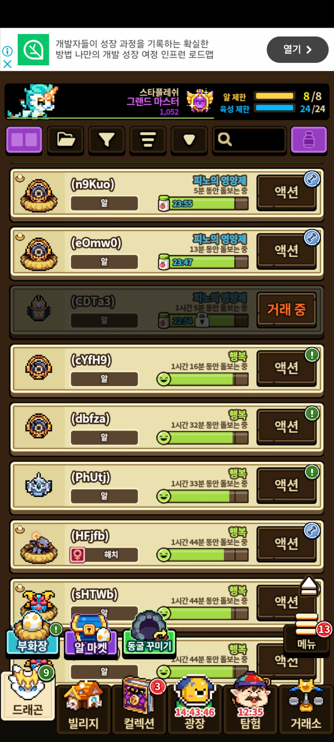 생각보다 잡기 쉽네 네시때는 끝말에 하나는 탐험이고 나머지는 드링크로 싸는데 이번에는 조금만 돌리면 3마리씩 나와서 잡기 쉽네요~