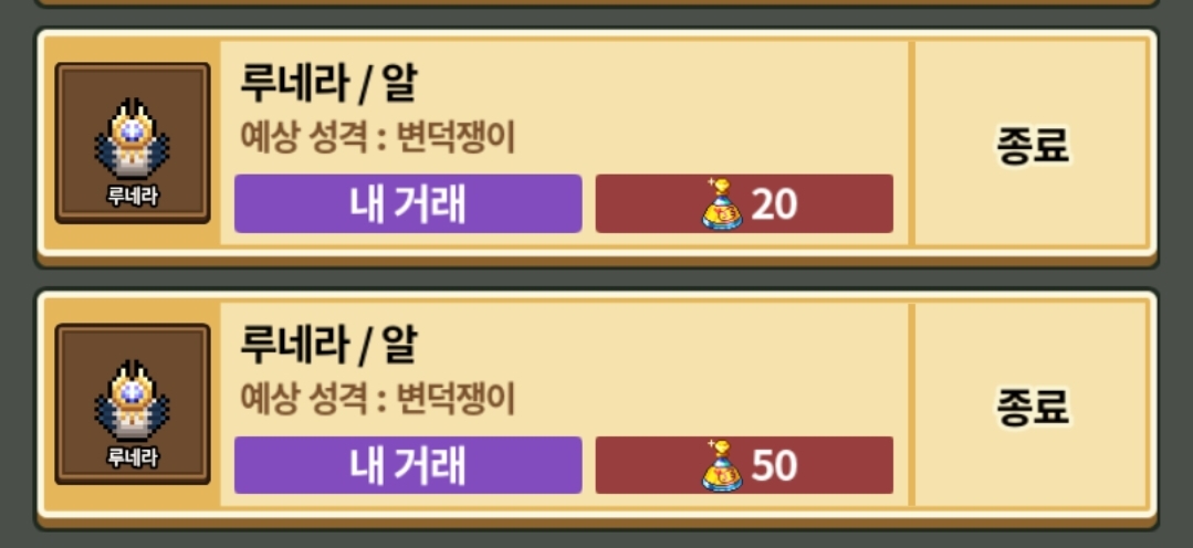 월식을 맞이하여 루네라를 20드링크, 50드링크에 팔았습니다.