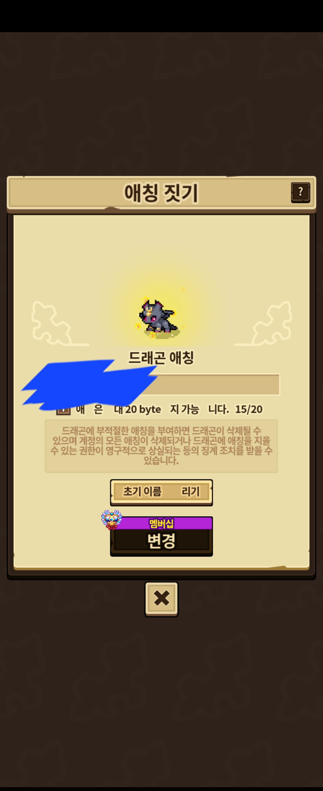 2번이미지: 애칭변경팝업창 오타