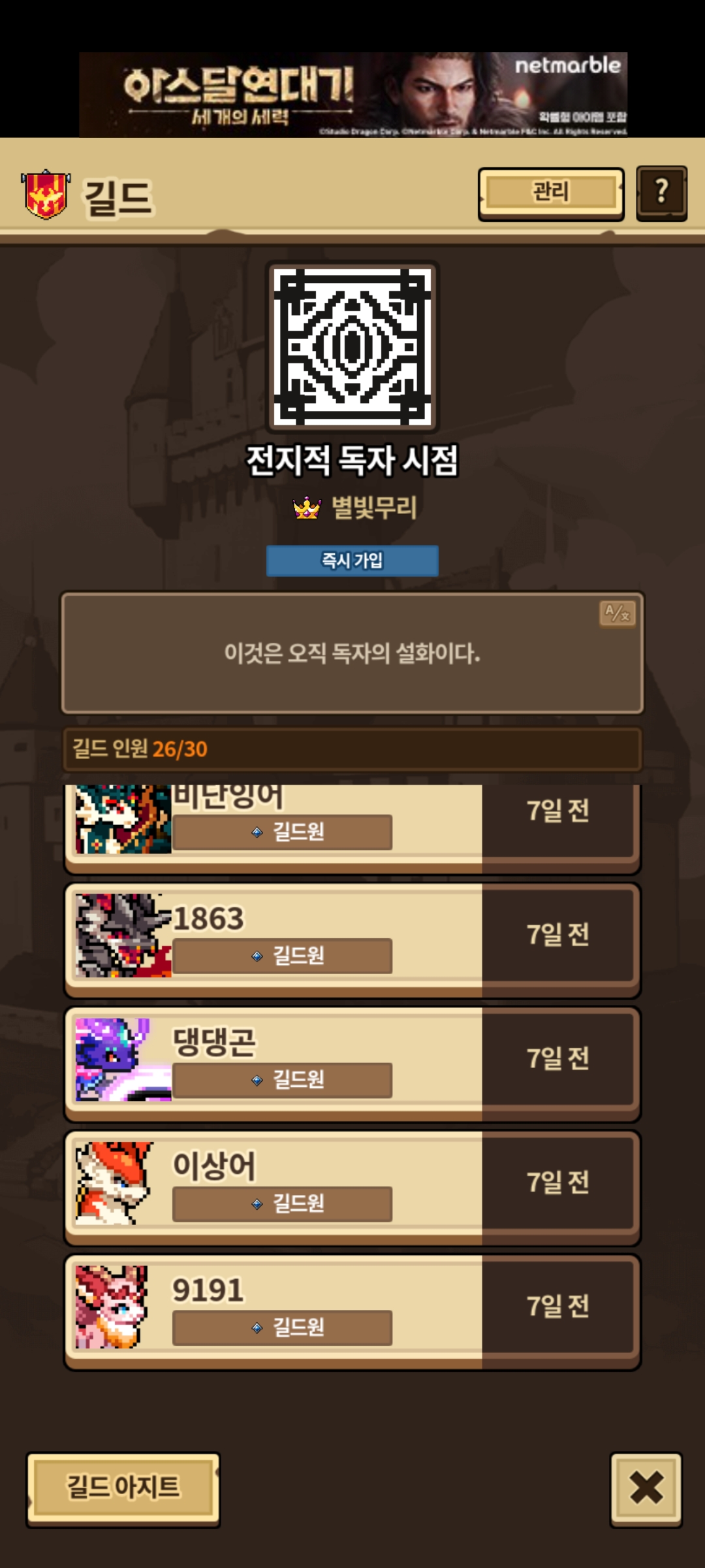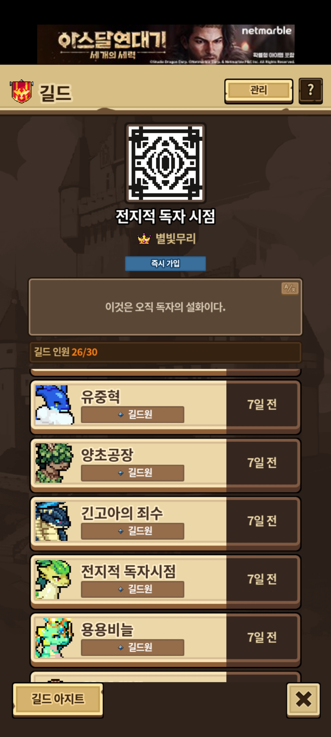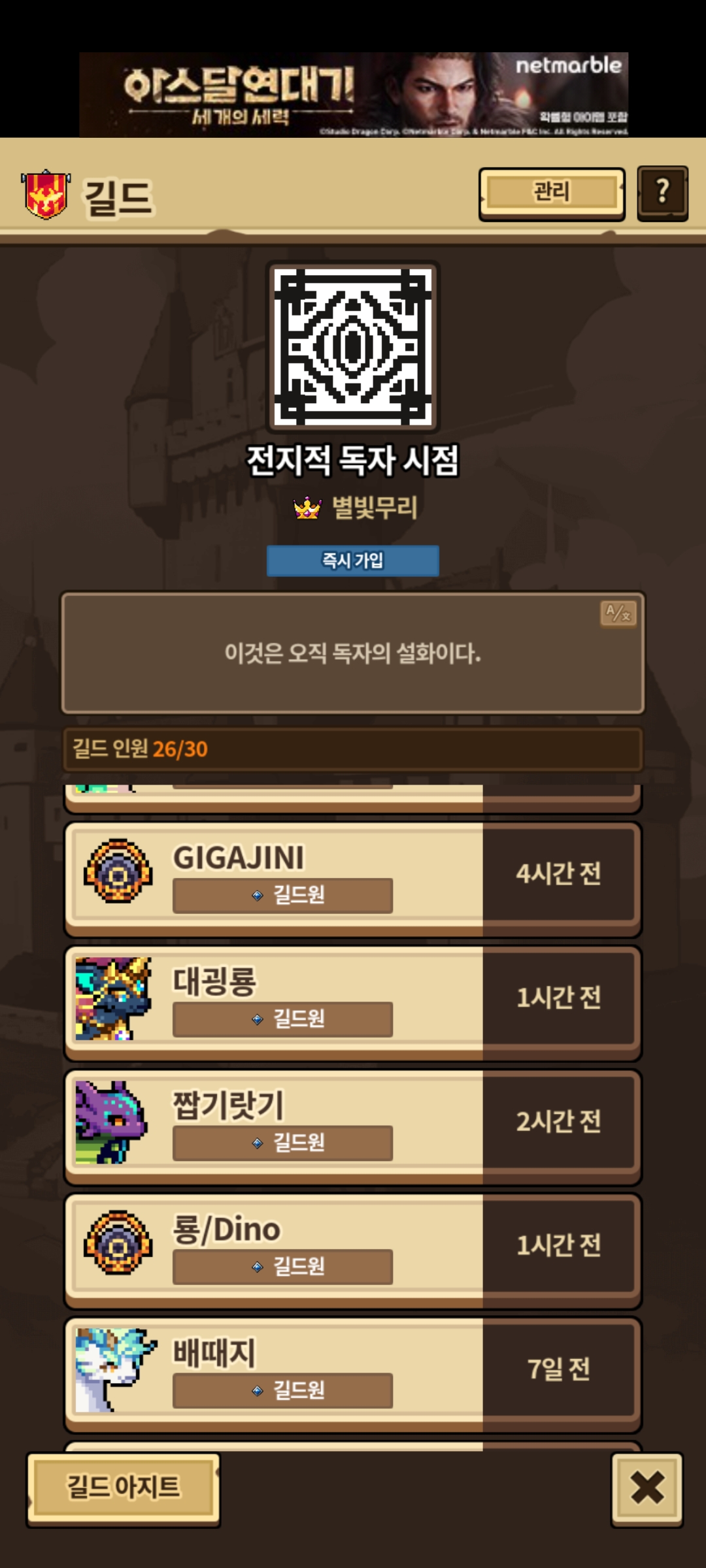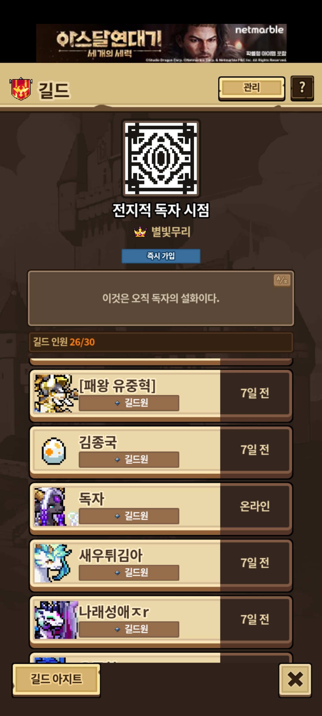 복귀 겸 길드 근황도 확인해봤는데 제가 길드장 빠지고 새로운 길드장분이 열심히 길드 살리고있던거같네요.