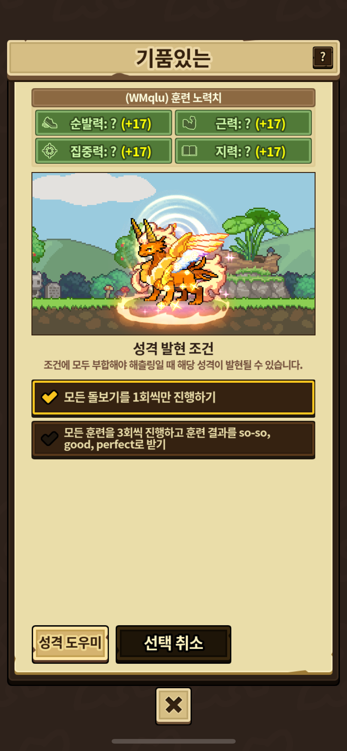 훈련 +17 점이면 3,5,9점 각각 한번씩 다 한건데 왜 조건 달성 체크가 안될까요??ㅜㅜ