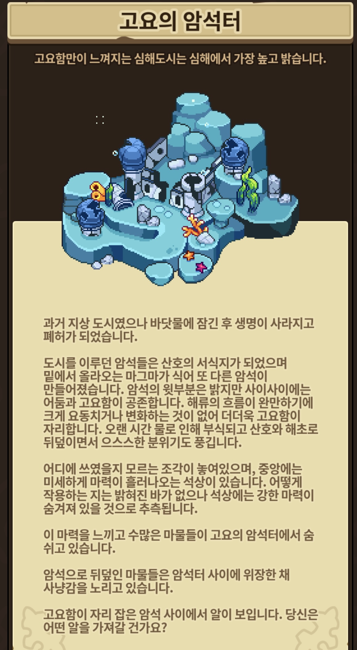 고요함과 으스스함만이 남은 패허가 된장르입니다-