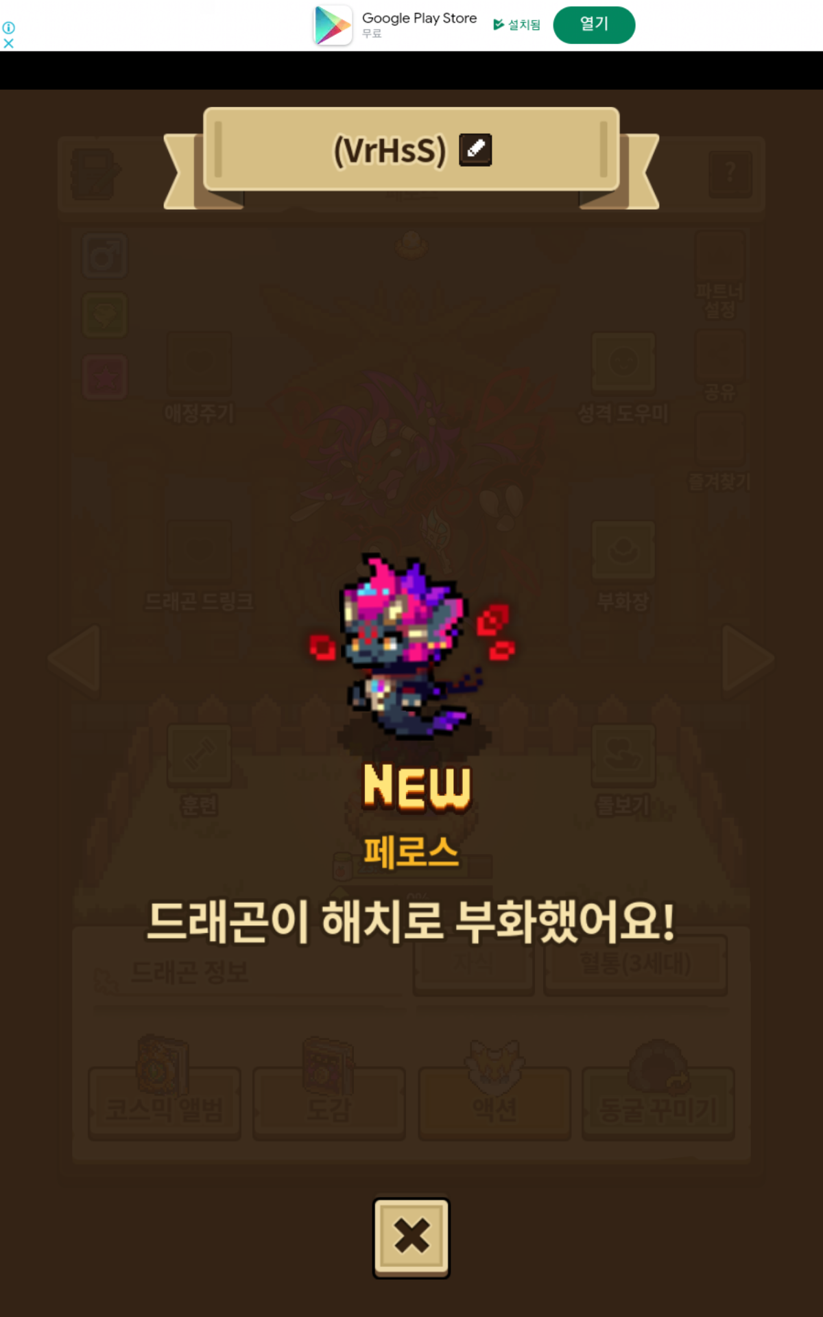 갑자기 알림창에 재로스가 부화했다고 해서 당황스러웠네요.