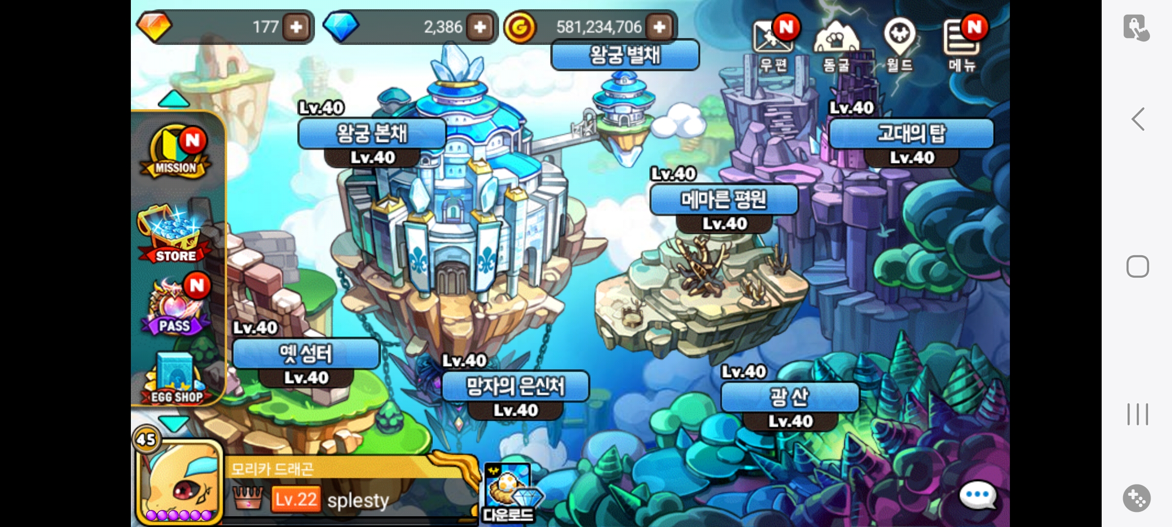 광산 - 입찰권을 넣어 디바인 스톤을 캐는 곳입니다. 시나리오를 일정 이상 진행하기 전에는 탐험도 가능합니다.