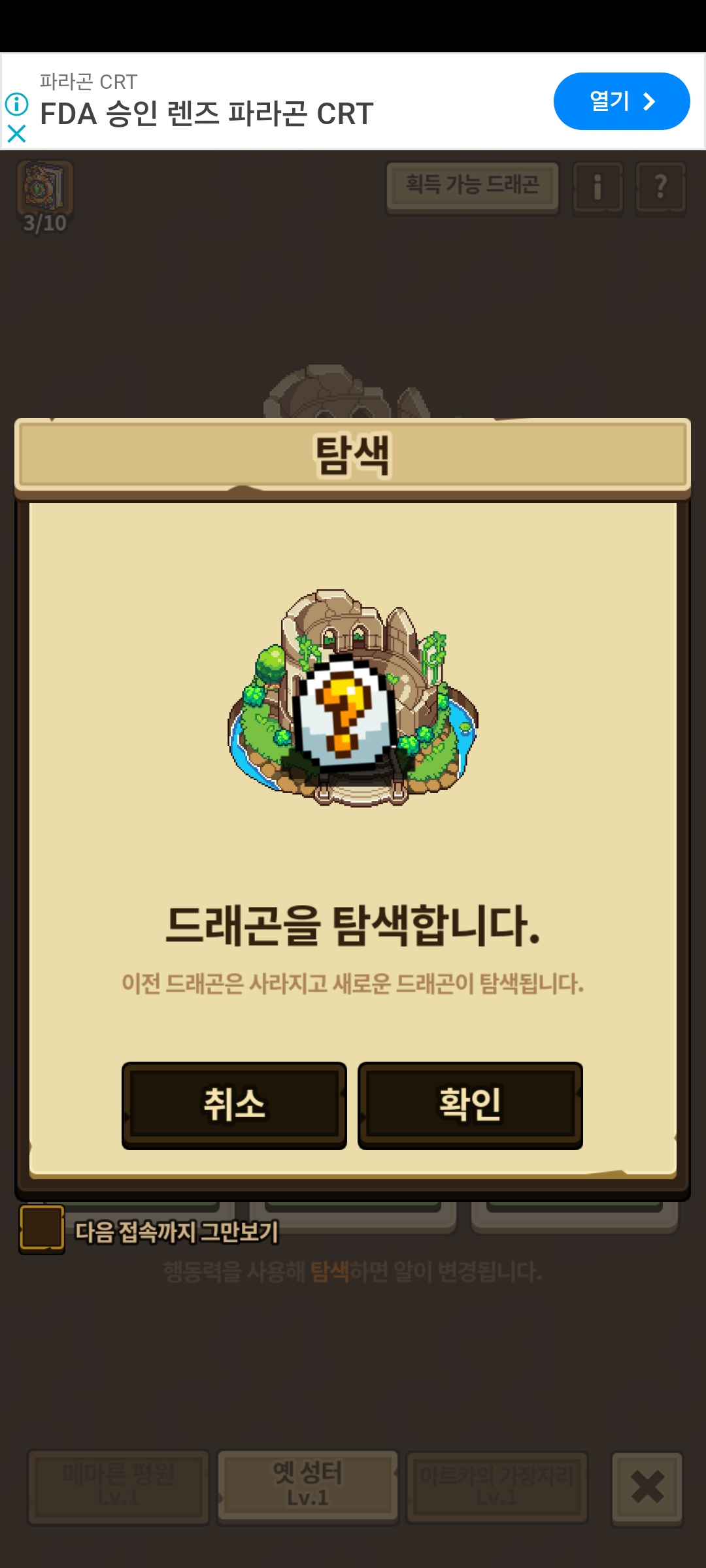 어차피 탐험레벨이 낮아서 희귀한 용이 절대로 안 나옵니다. 피로도만 날려먹는 셈입니다.
