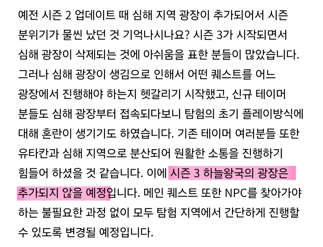 설마 하늘왕국 광장 만드는 중이었는데 시즌3 업데이트 출시일 앞당기려고 취소시킨 걸까요