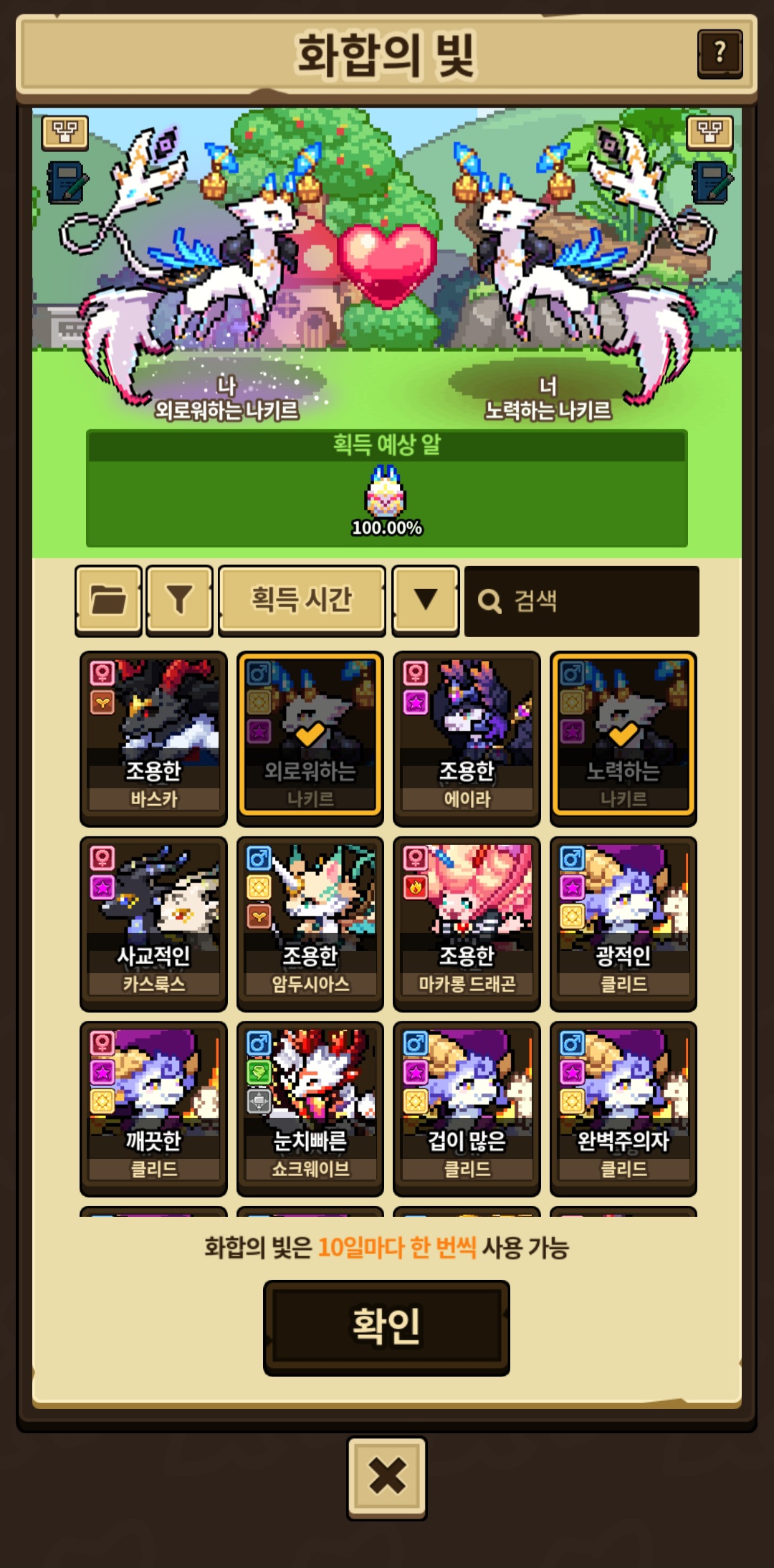 순혈 만들어야하는데 성별 교환권 쓰기 아까워서 화합의 빛으로 교배작 중입니다..ㅋㅋㅋㅋ ㅠㅠ