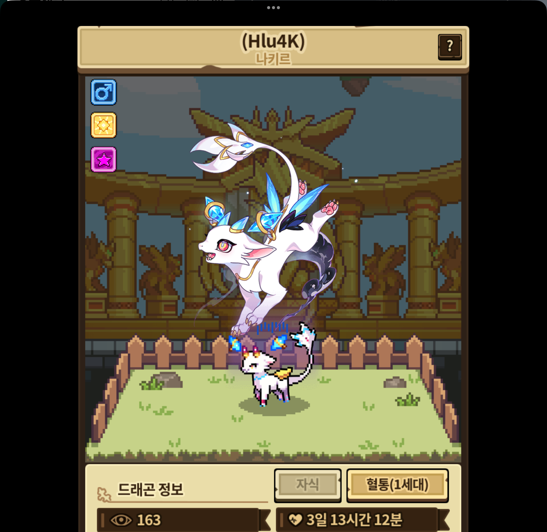 천상외형 나키르 해츨링의 혈통에 들어가면 뿔 색깔이 기본으로 되어 있습니다