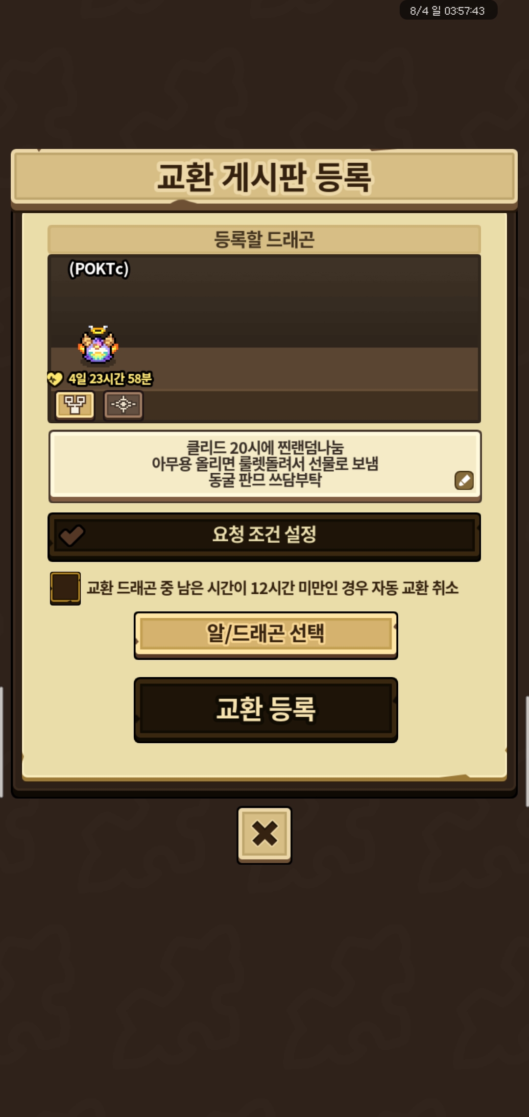 거래로 올리신 용은 안받고 거래 취소 후 개인선물로 보낼 예정입니다!