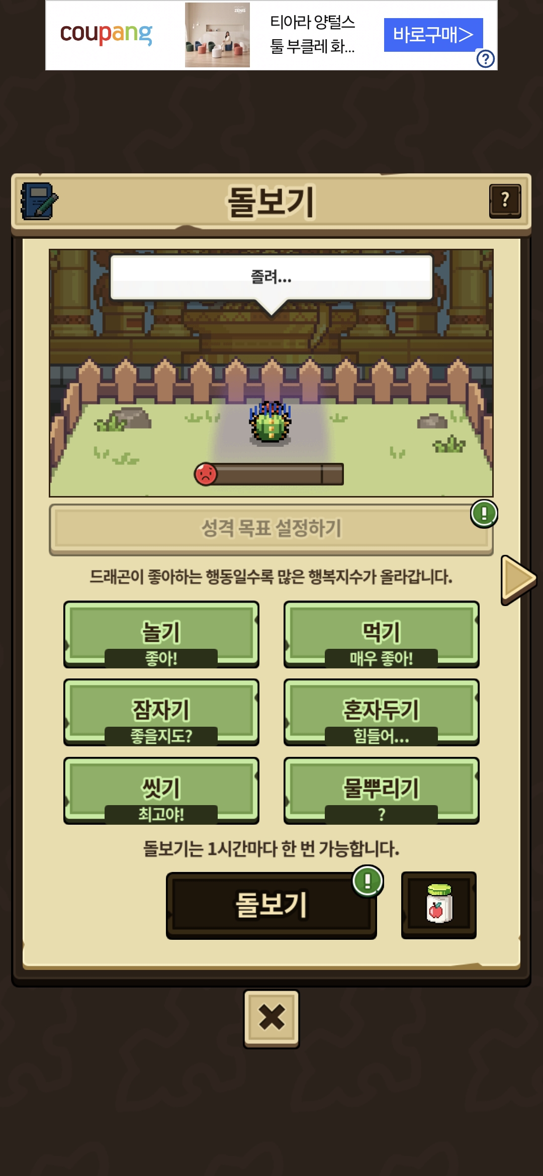 옛날에 선인장 드래곤 기본 외형 생각하고 키우다가 애가 시들시들하게 커서 충격먹었었는데 오늘 선인장 알 얻고 돌보기 보니까 물뿌리기 빼고 다 했었네요….