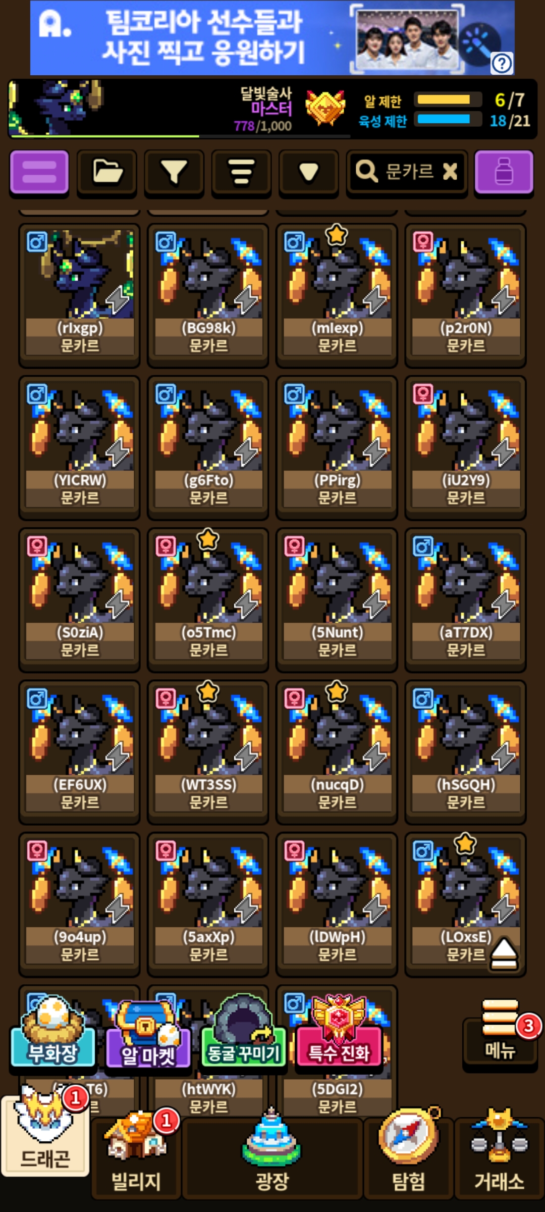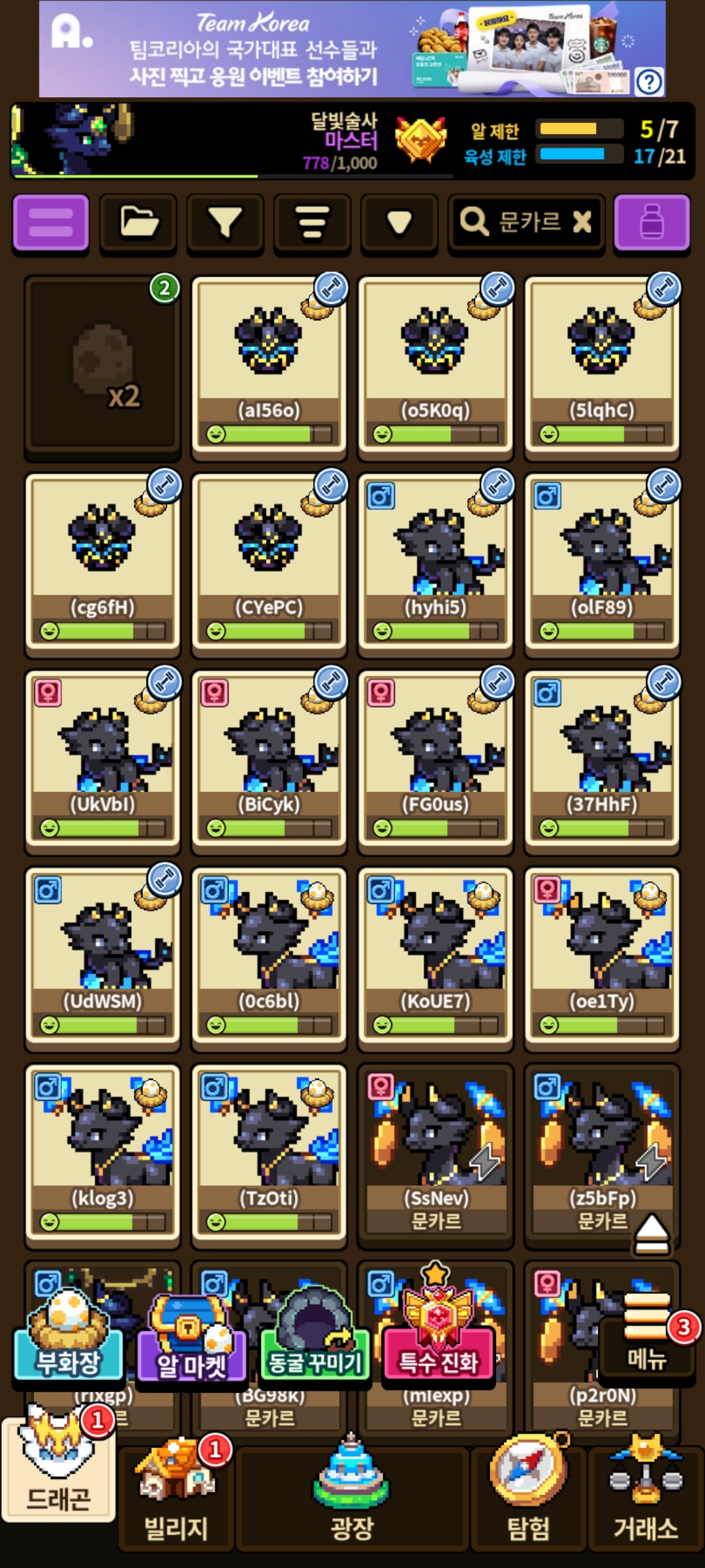 육성칸이 유독 많이찬이유는..오늘 2만드링