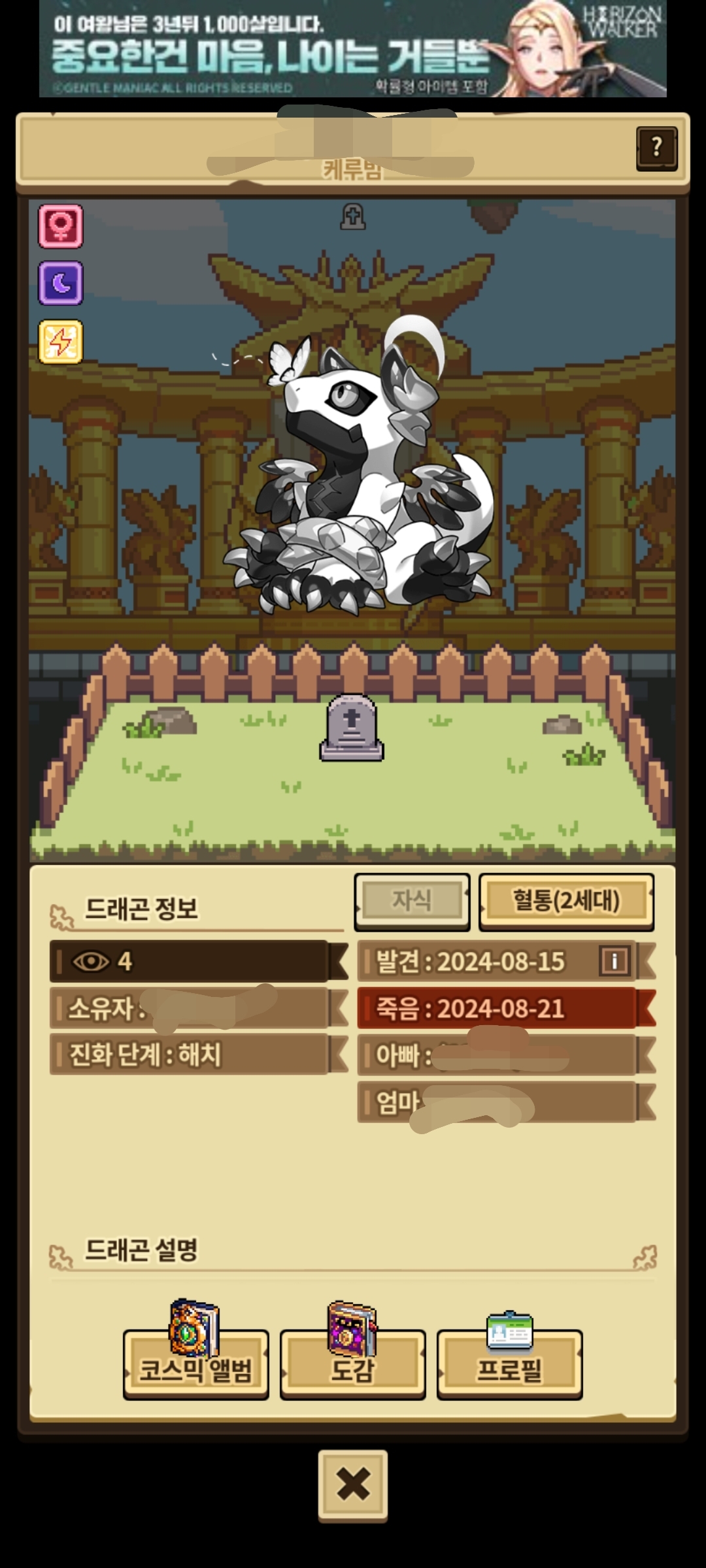 ..라테아(저세상)로 가버렸군요. 뭐 잡이기도하고 딱히 뭘 적어두진 않기도 했는데.. 어째선지 기분이 살짝 않좋네요..