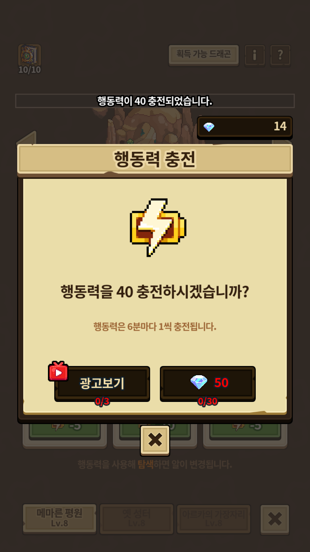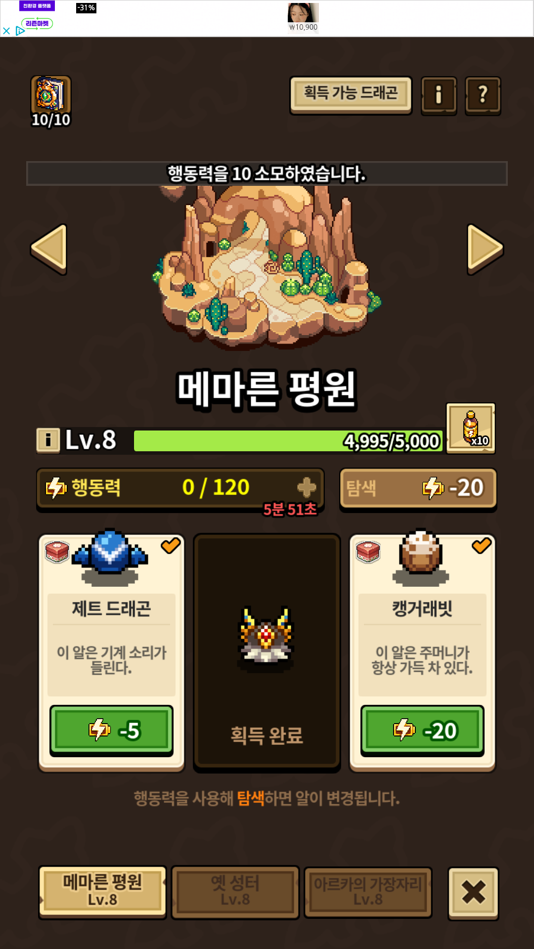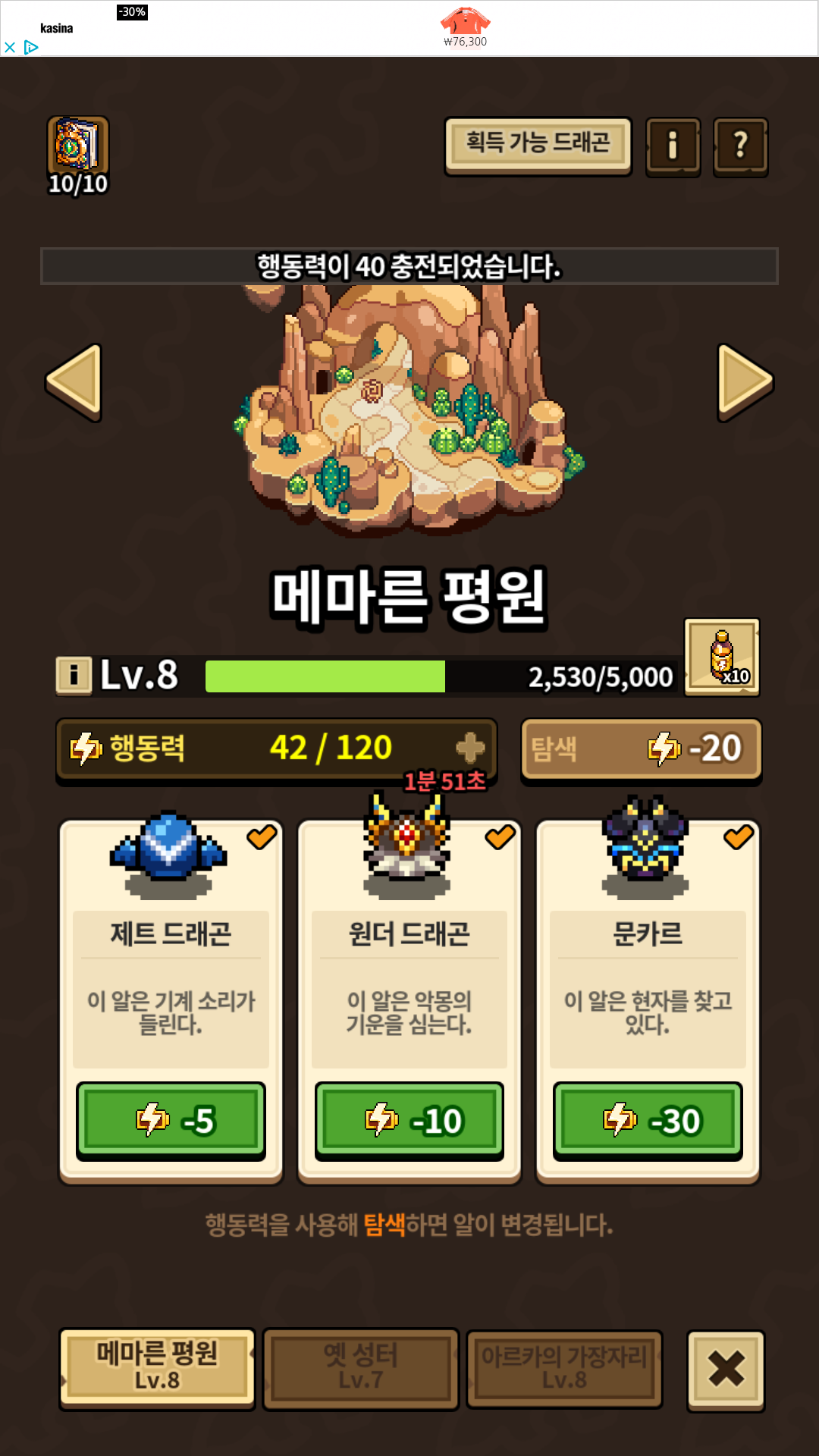 다른 맵 8 초반에 메마른 평원만 더 집중해서 1렙 올리는 게 목표였습니다.