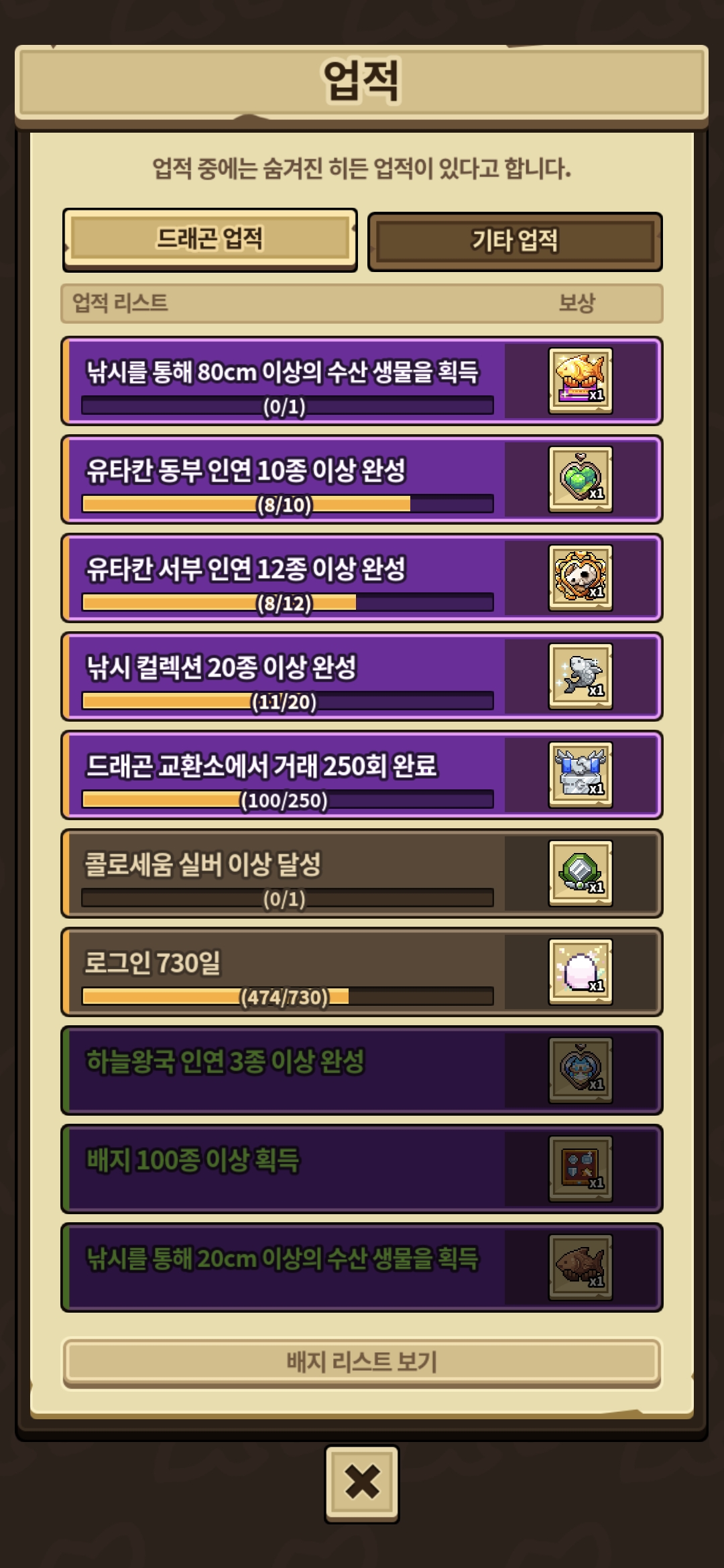 유타칸 서부와 동부의 인연이 각각 13개, 26개 완성했습니다. 그런데 업적에는 8개만 인정되었습니다.