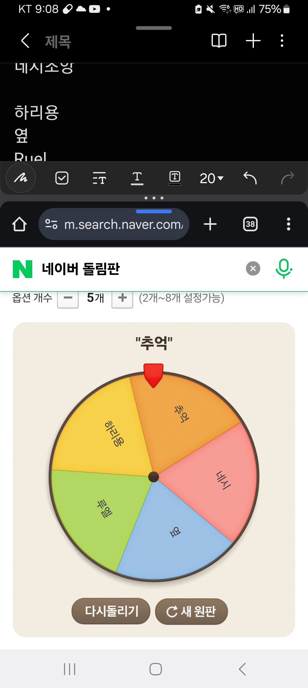 8명이 한계라 두번 나누어 그중에서 나온분들로 다시 돌려 3번이 나왔습니다