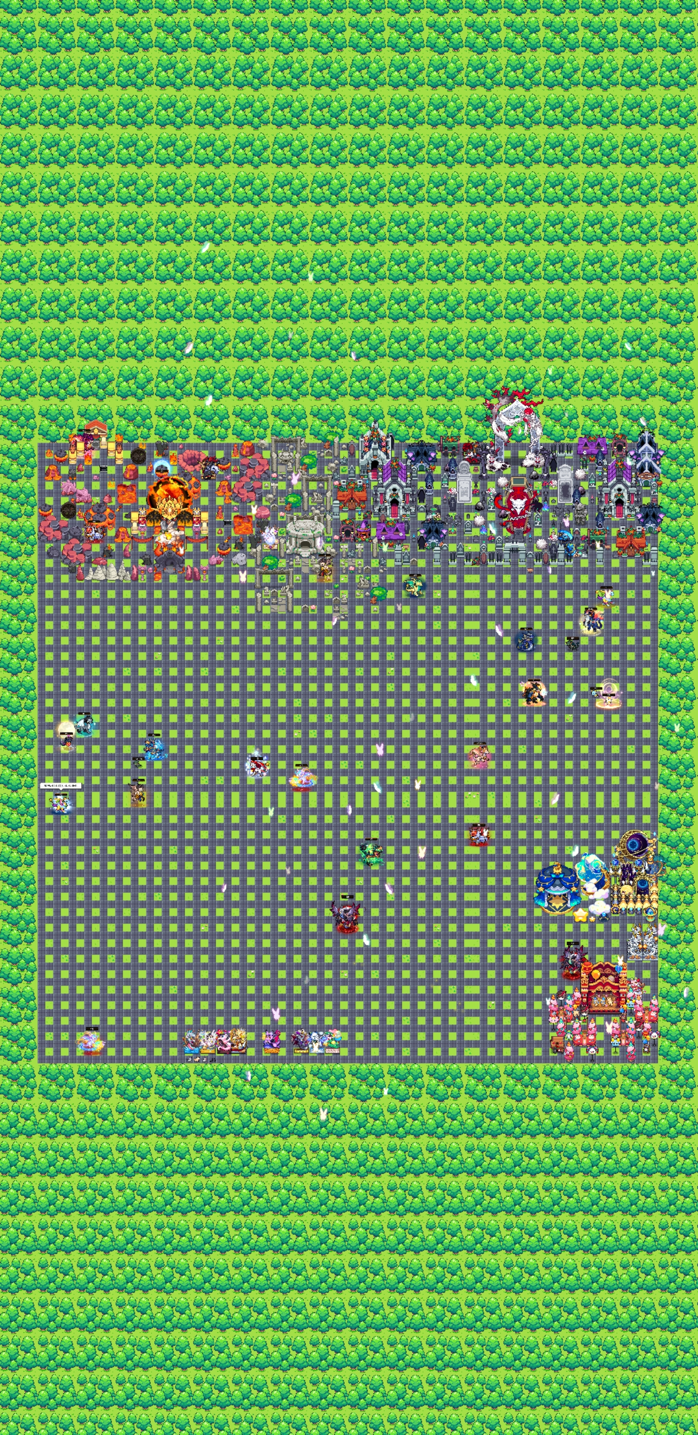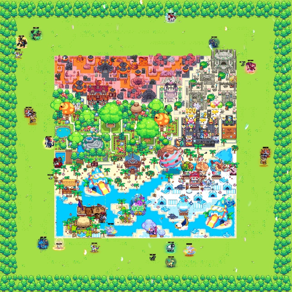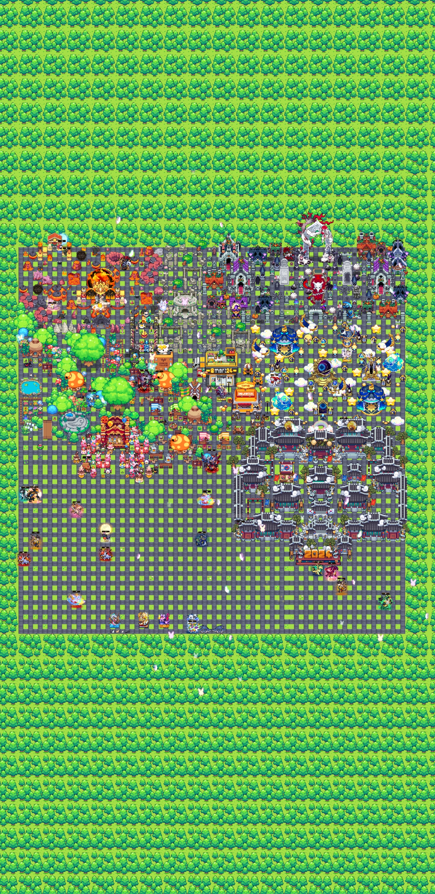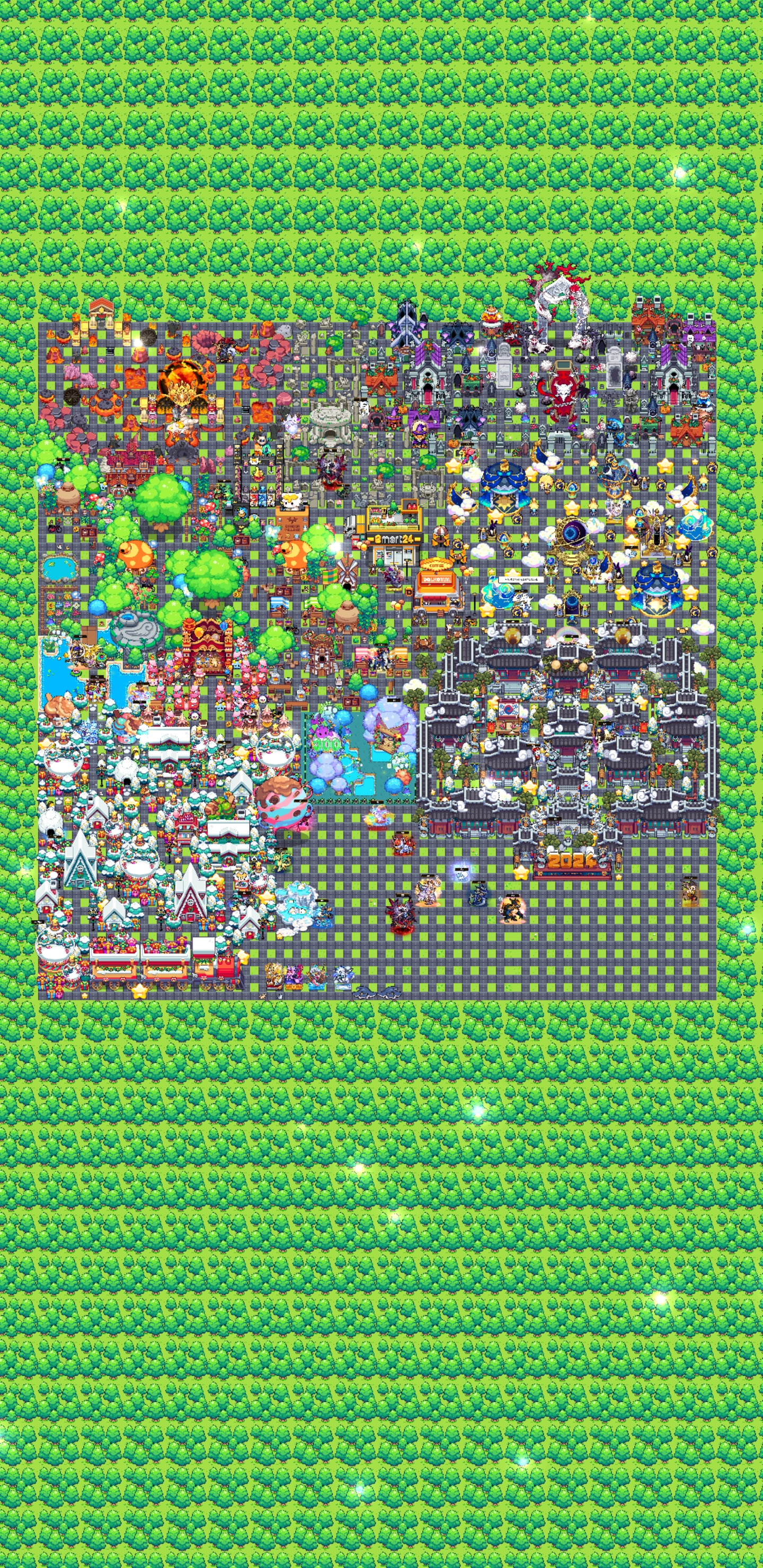 빌리지 크기가 잘 감이 안와서 일단 바닥에 아무것도 없는채로 체크무늬 넣어주고,. 넣고싶은 컨셉의 빌리지 템들을 막 꺼내보고 생각해보기.
