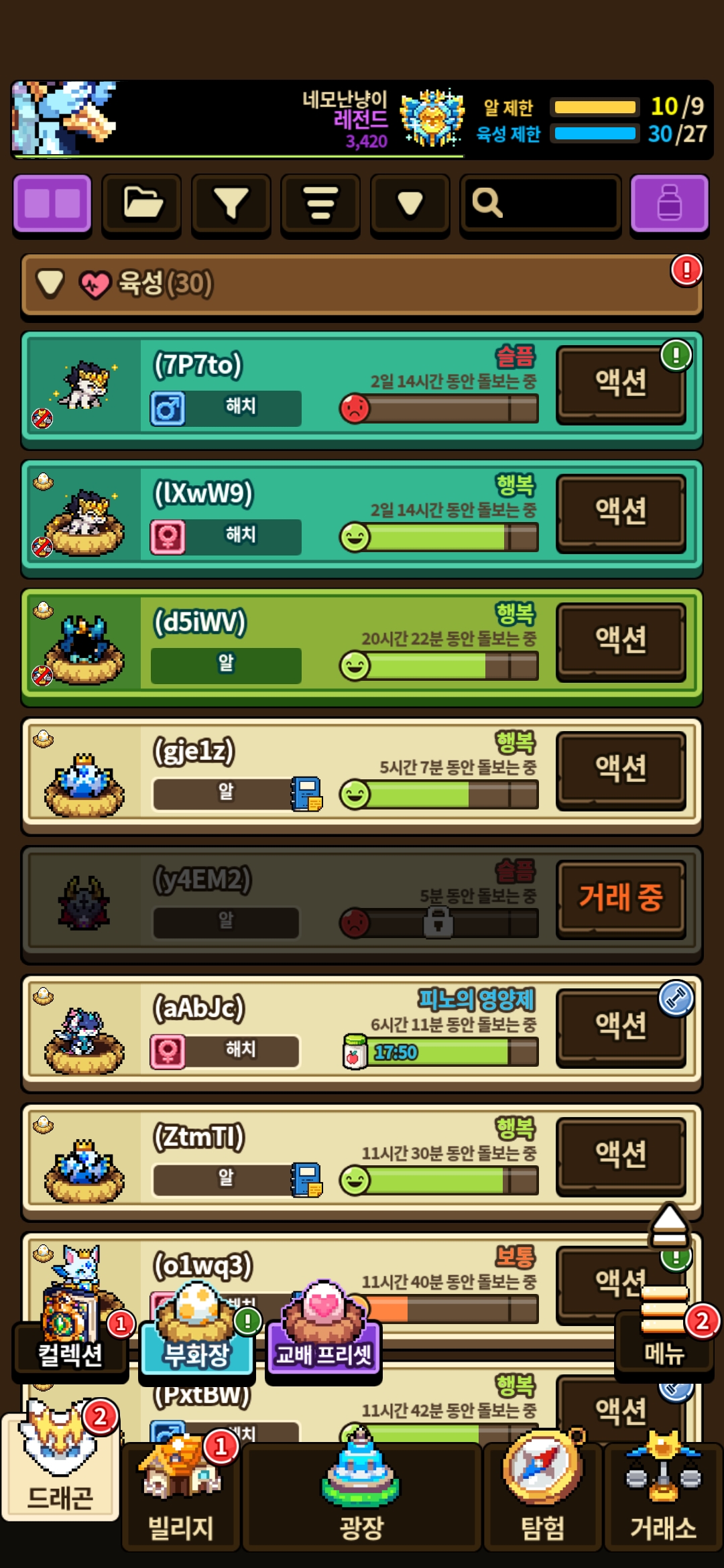 부화기에 들어가있는 애들도 육성과 알 제한에